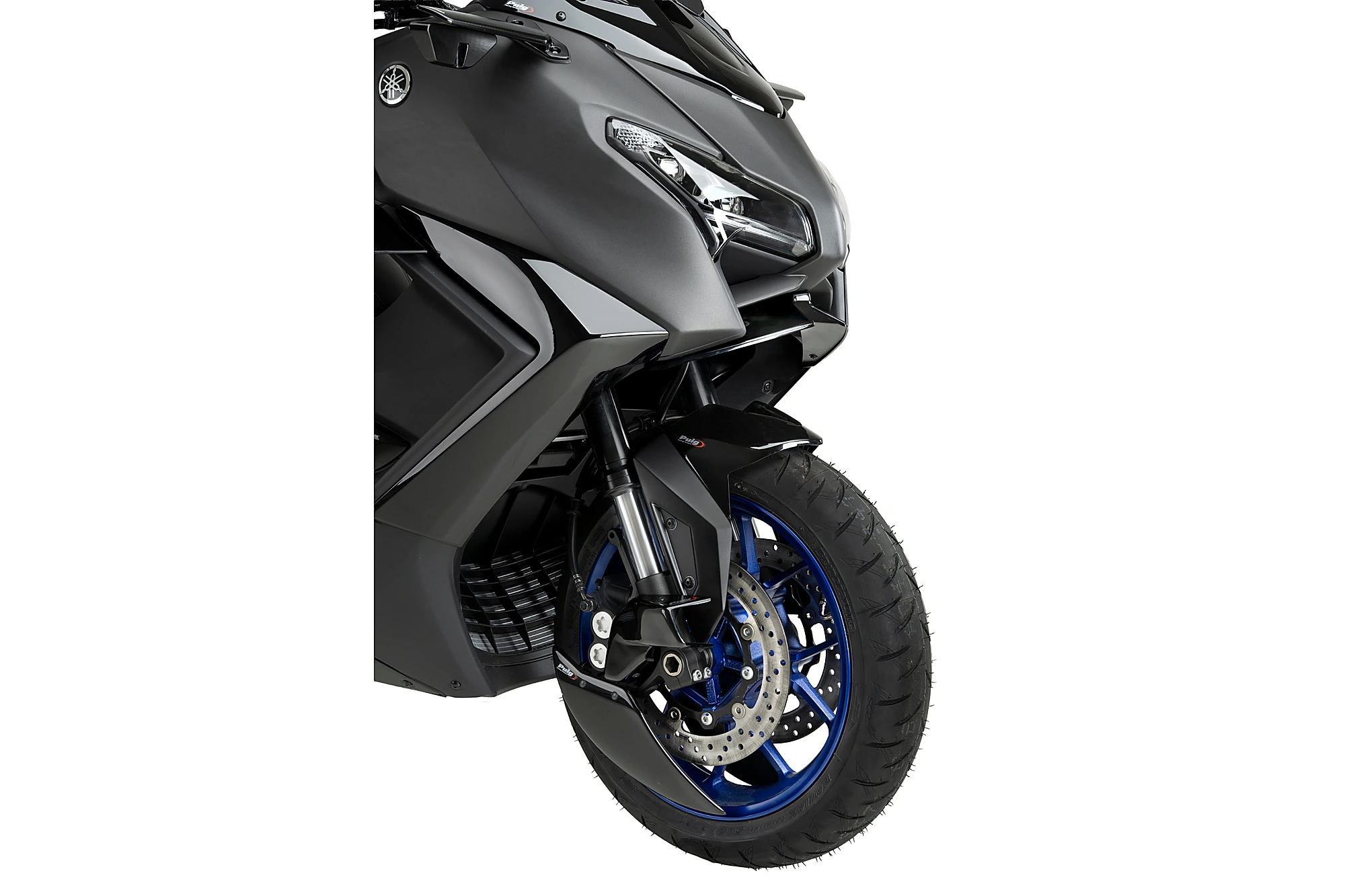 Its studied design, in addition to providing a more sporty and personalized aesthetic, eliminates turbulence at the front wheel by creating a partial lenticular cover that favors the motorcycle's aerodynamics, especially at high speeds. Includes sturdy, lightweight aluminum brackets finished in discreet textured black.