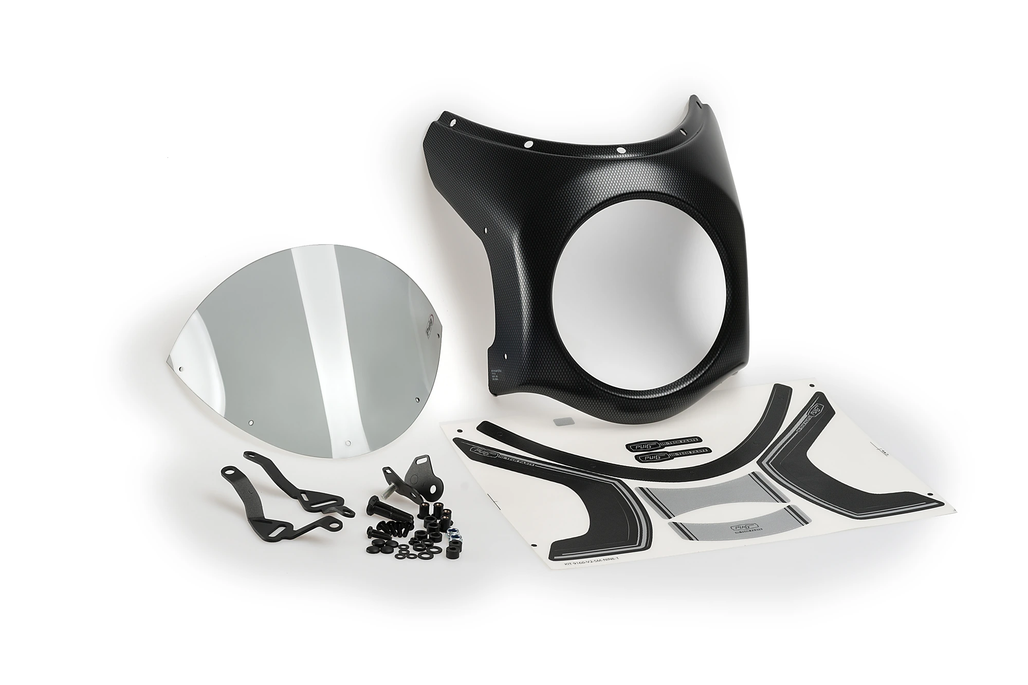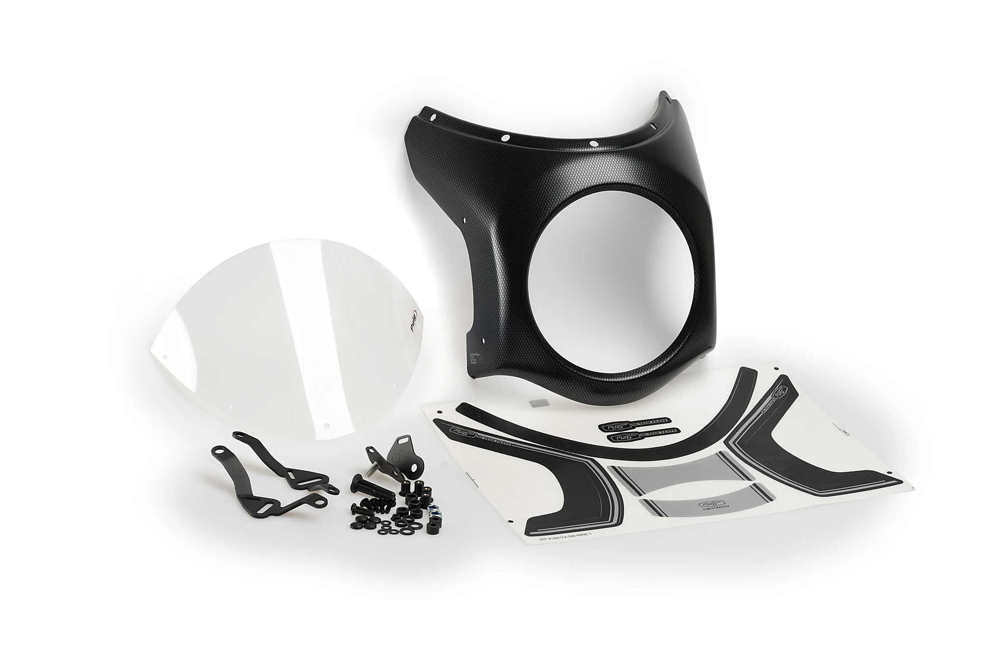 Puig has two types of fairings depending on the diameter of the headlight of your bike: 195mm or 180mm. In addition, Puig has created for the most popular models, a support with a specific adhesive kit. If you need a universal model, Puig has a mounting kit that allows you to attach the piece to various motorcycle models.