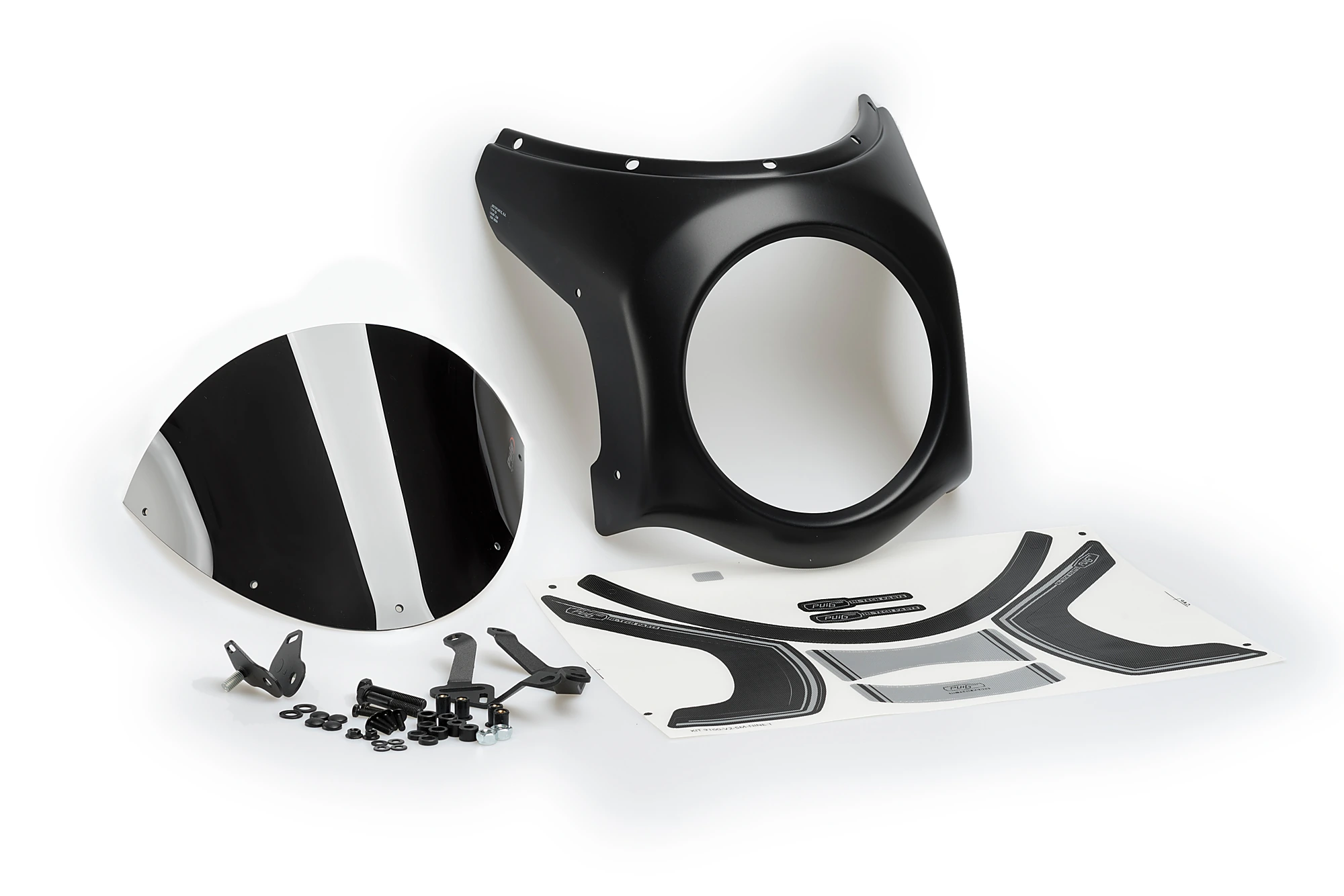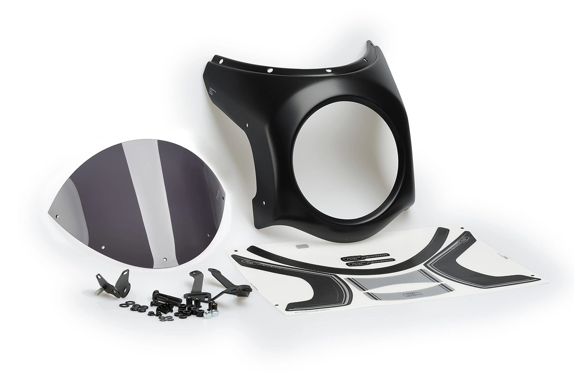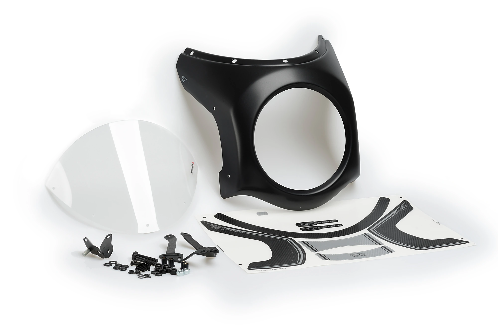 Puig has two types of fairings depending on the diameter of the headlight of your bike: 195mm or 180mm. In addition, Puig has created for the most popular models, a support with a specific adhesive kit. If you need a universal model, Puig has a mounting kit that allows you to attach the piece to various motorcycle models.