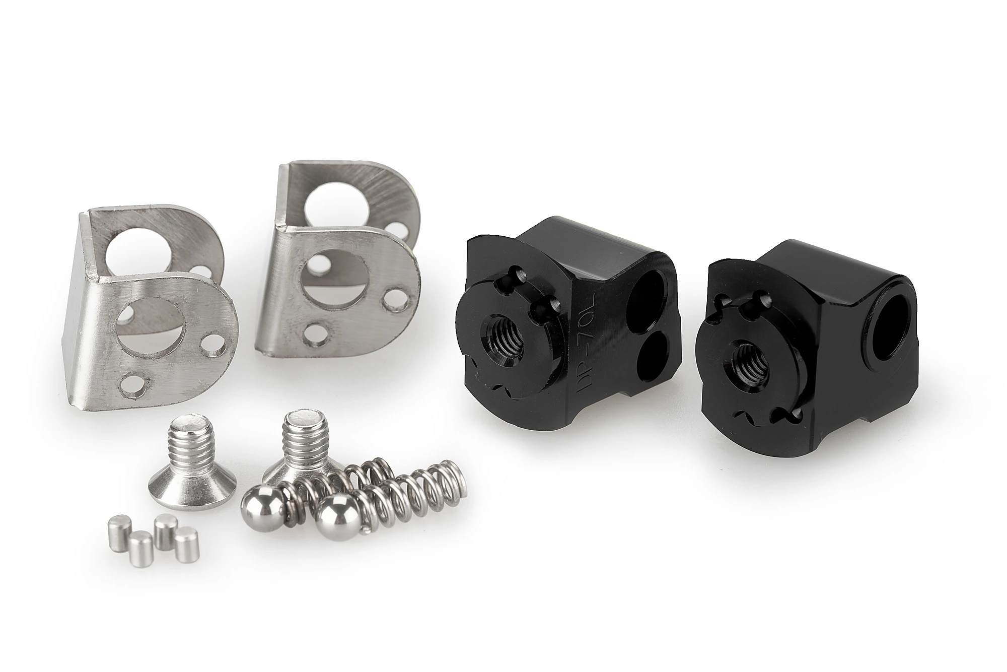40mm relocation brackets. This offset along with the adjustable footpeg adaptor allows you to move the footpeg relative to the original position in a 40mm radius and at 15 degrees intervals.