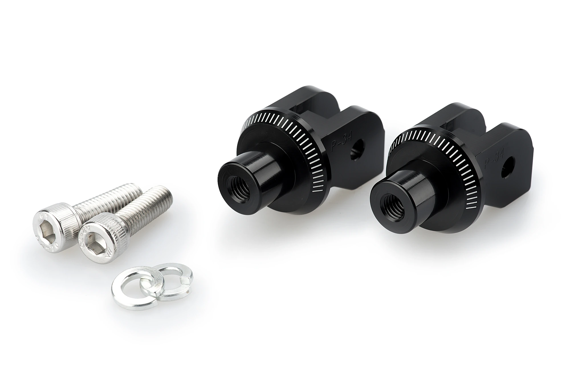 20mm relocation brackets. This offset along with the adjustable footpeg adaptor allows you to move the footpeg relative to the original position in a 20mm radius and at 15 degrees intervals.