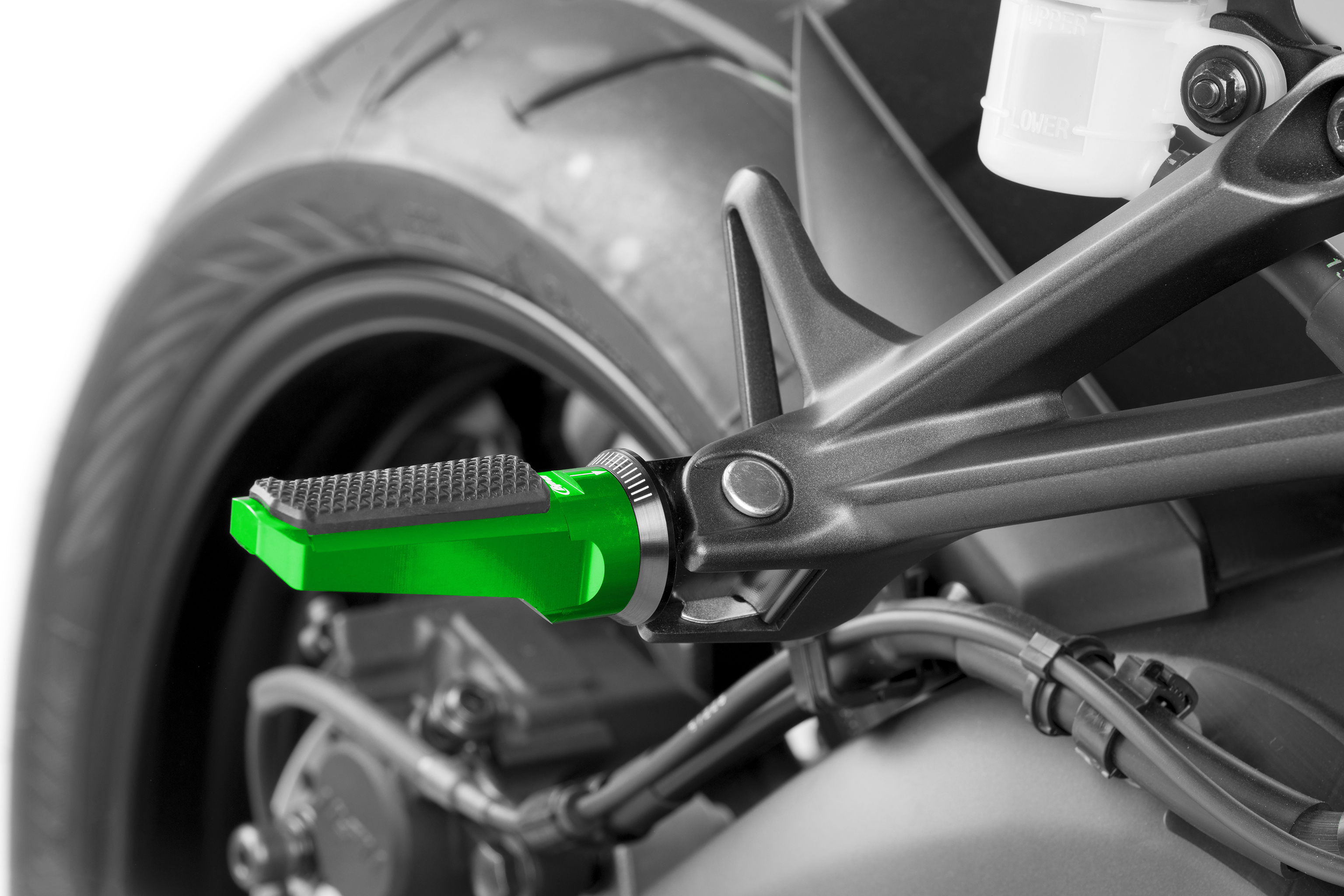 They mount a rubber that improves the comfort and grip of both the driver and the passenger. Available in blue, black, gold, silver, red, orange and green, the user can find the matching footpegs, or in contrast, to the color of his motorcycle.