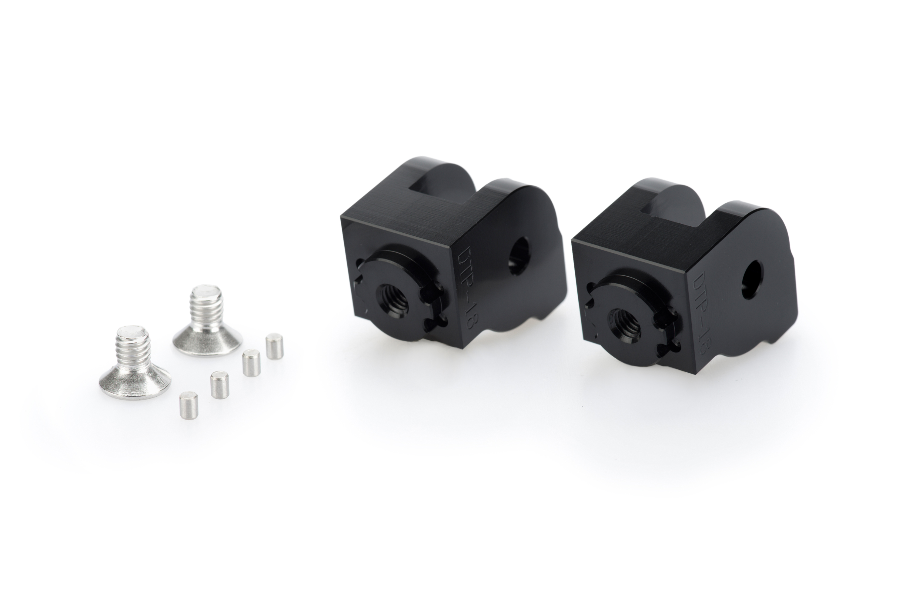 20mm relocation brackets. This offset along with the adjustable footpeg adaptor allows you to move the footpeg relative to the original position in a 20mm radius and at 15 degrees intervals.