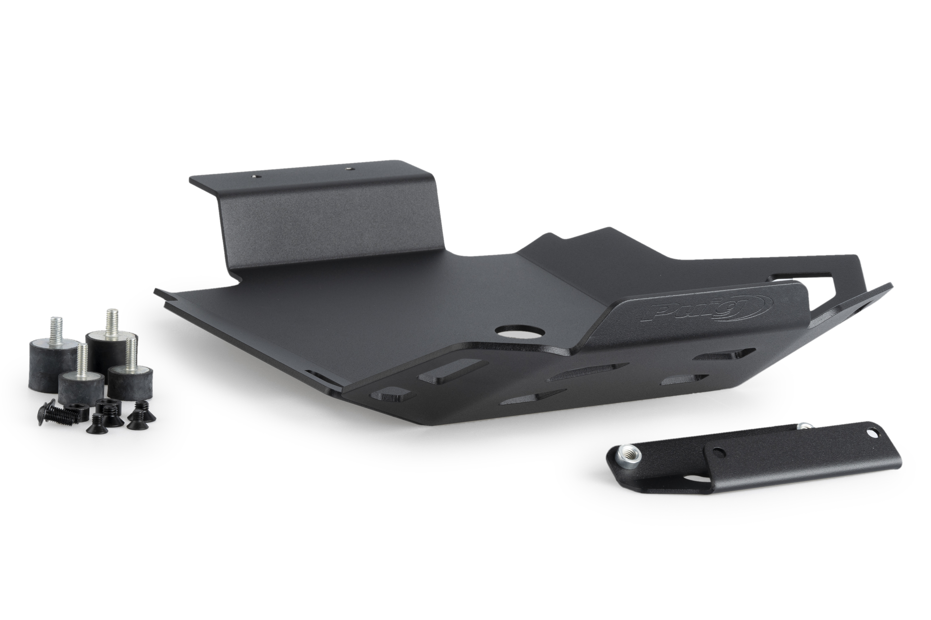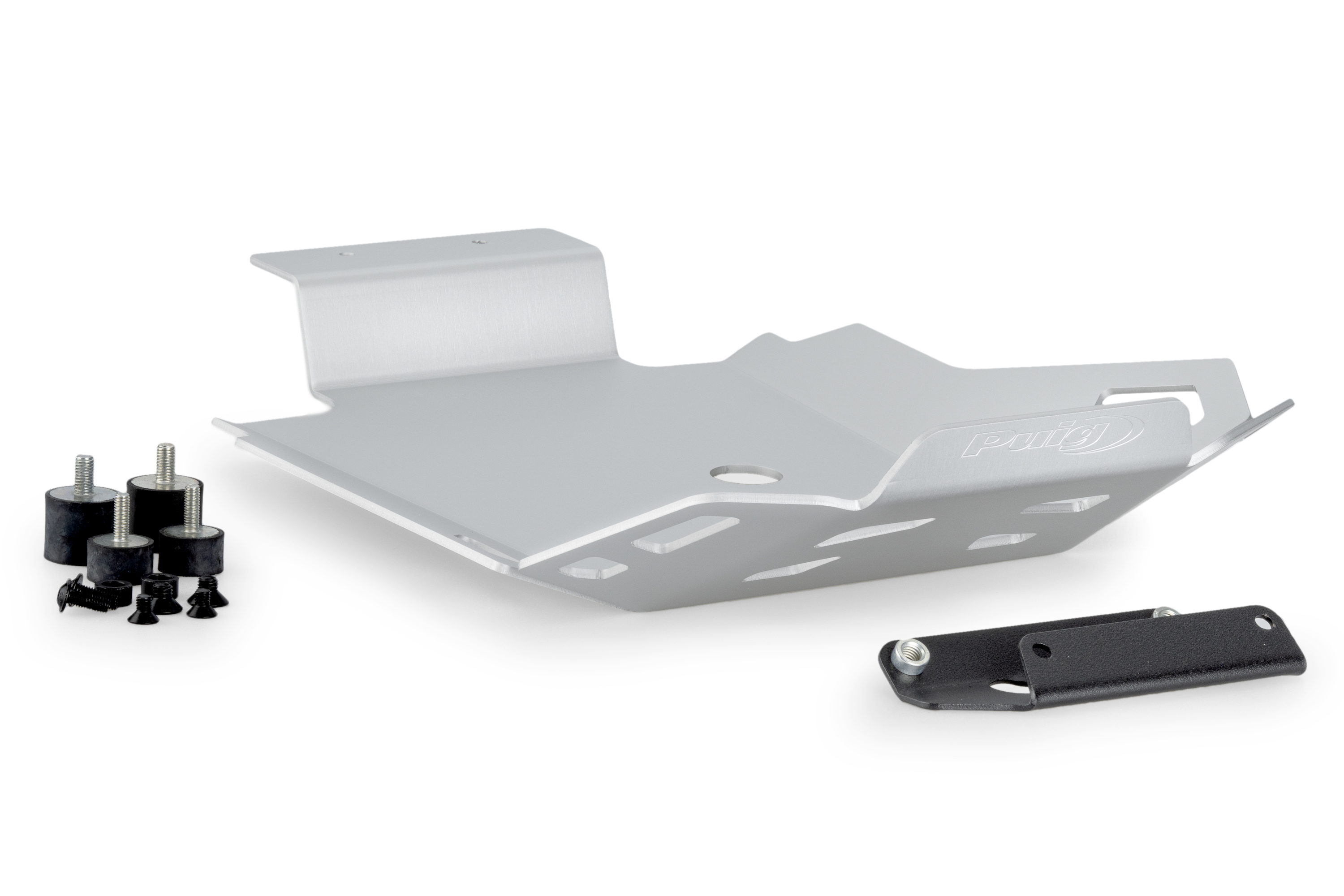 The protector is fixed to the lower part of the motorcycle with anti-vibration rubber supports that absorb any possible blows that the protector may receive, distributing the impact force through the different fixing points, also avoiding annoying noises that arise when these rubber mounts are not used.