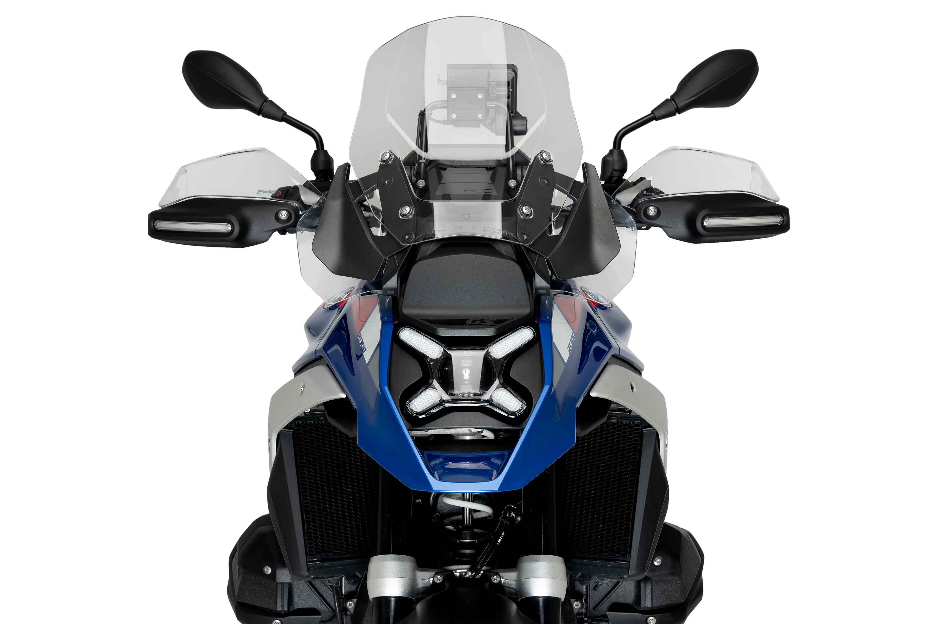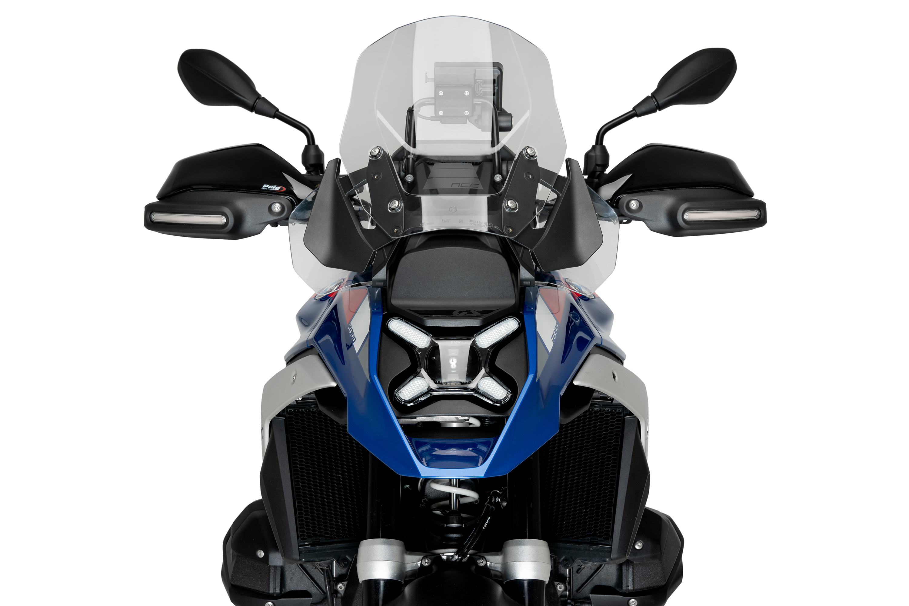 Puig's handguard extension, specifically designed for the BMW R1300GS, maintains the characteristic design lines of the iconic German trail, stylizing the shape of the handguard and minimizing shapes in the grip area, while improving protection and the motorcycle's aerodynamics.