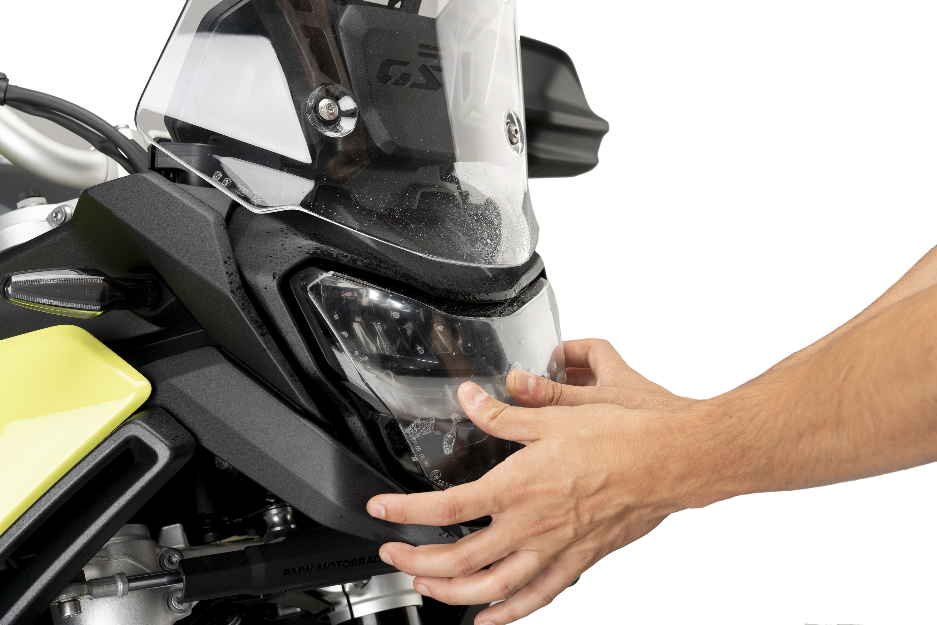 The new Adhere Puig headlight protector is specifically designed to increase the protection of the front headlight on the BMW F900 GS 24’ motorcycle. The innovative Adhere headlight protector line fits perfectly to the shape of the headlight, making it virtually invisible to the naked eye without compromising the design or the lighting capacity.