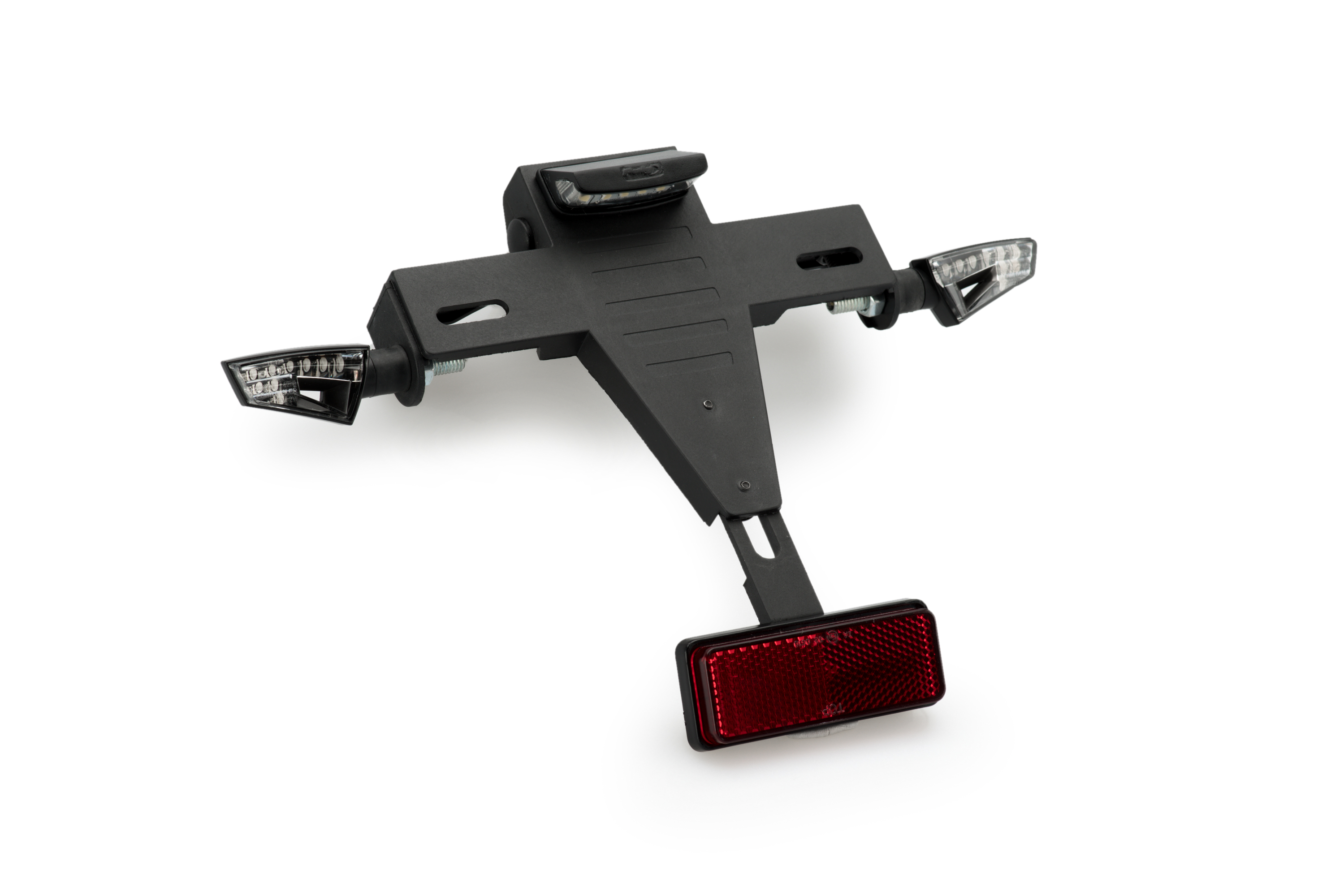 The Angle license plate lighting group is the perfect evolution of the PLA model. Its new compact design facilitates the integration of the license plate holders in the motorcycle, freeing up space in the area of the taillights. The LED technology and the new arrangement of the LEDs make it possible to improve the central and side illumination of the license plate. It is compatible with all models of Puig license plate holders that have a lighting group.