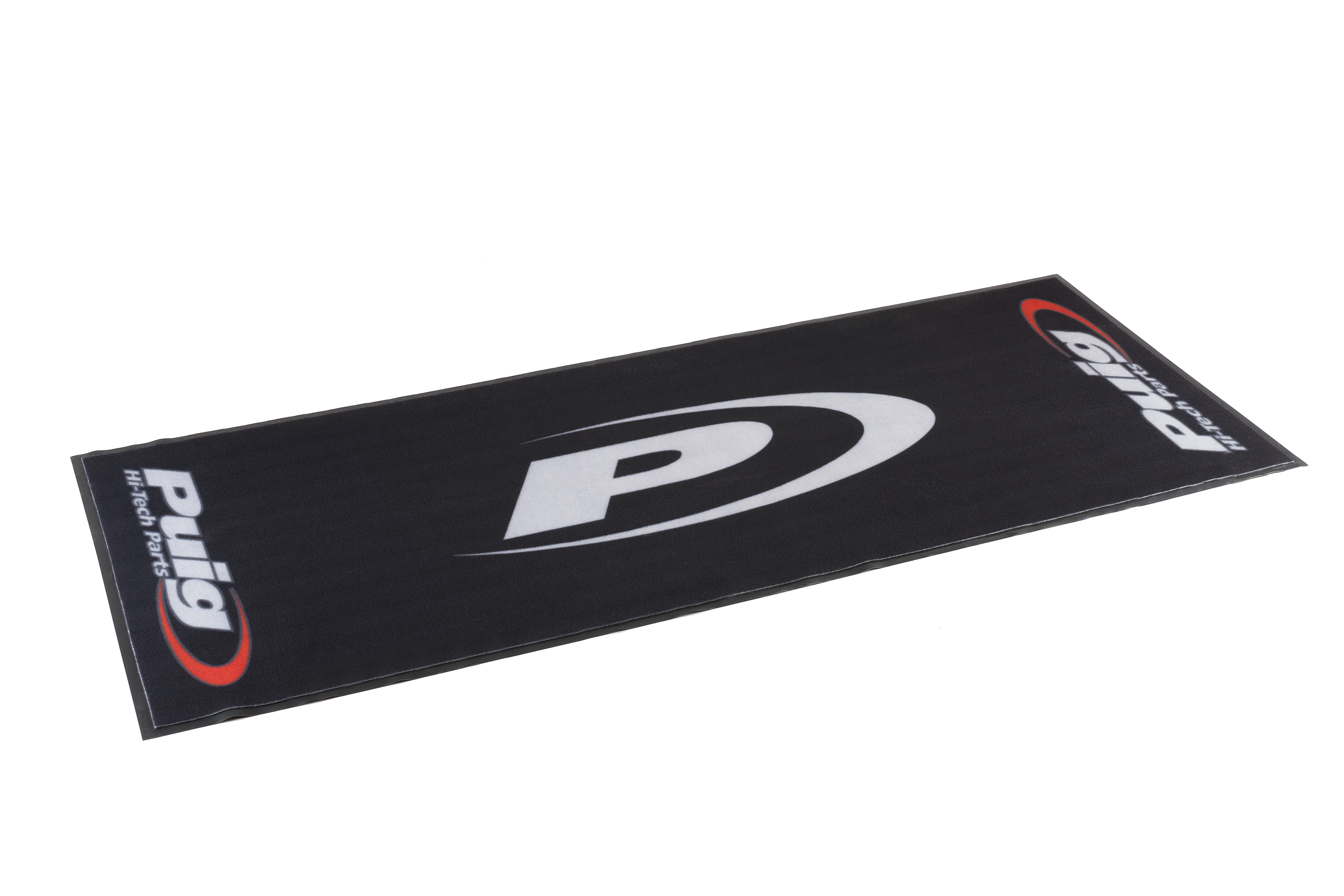 The Puig Hi-Tech Parts carpet is designed to help riders keeping their garage or workshop clean. Made of 100% nylon, non-slip and water resistant, the carpet allows you to park the bike on top of it and carry out maintenance or customization operations keeping the floor clean. Designed with the Puig Hi-Tech Parts logo, its great dimensions (2000x800 mm) are enough to accommodate almost all motorcycles on the market.