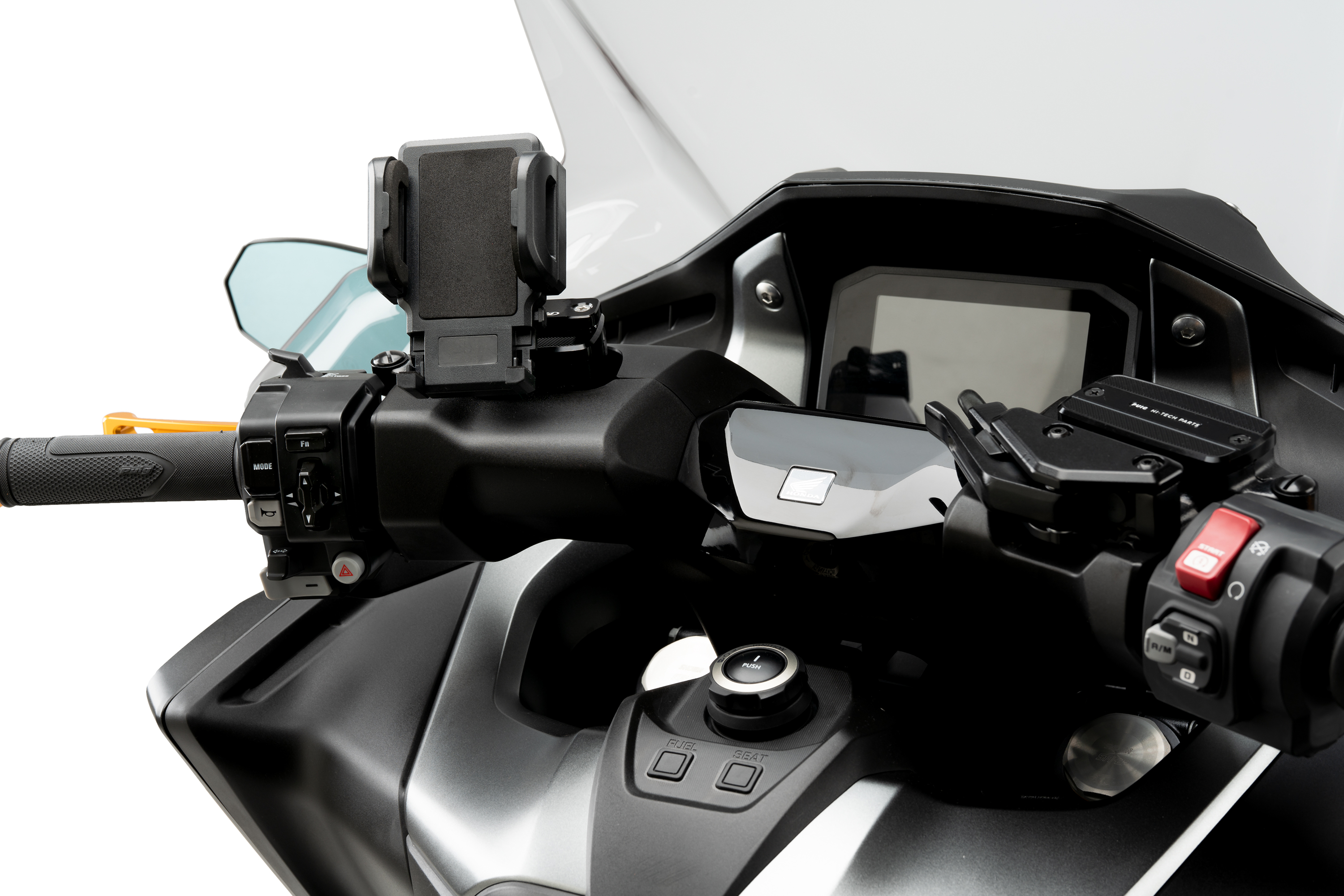 You can mount the phone holder on the base of the mirror, the mirror rod, on the handlebar and on the seat post of the motorcycle where it will be more immobilized against possible impacts or potholes on the road.
