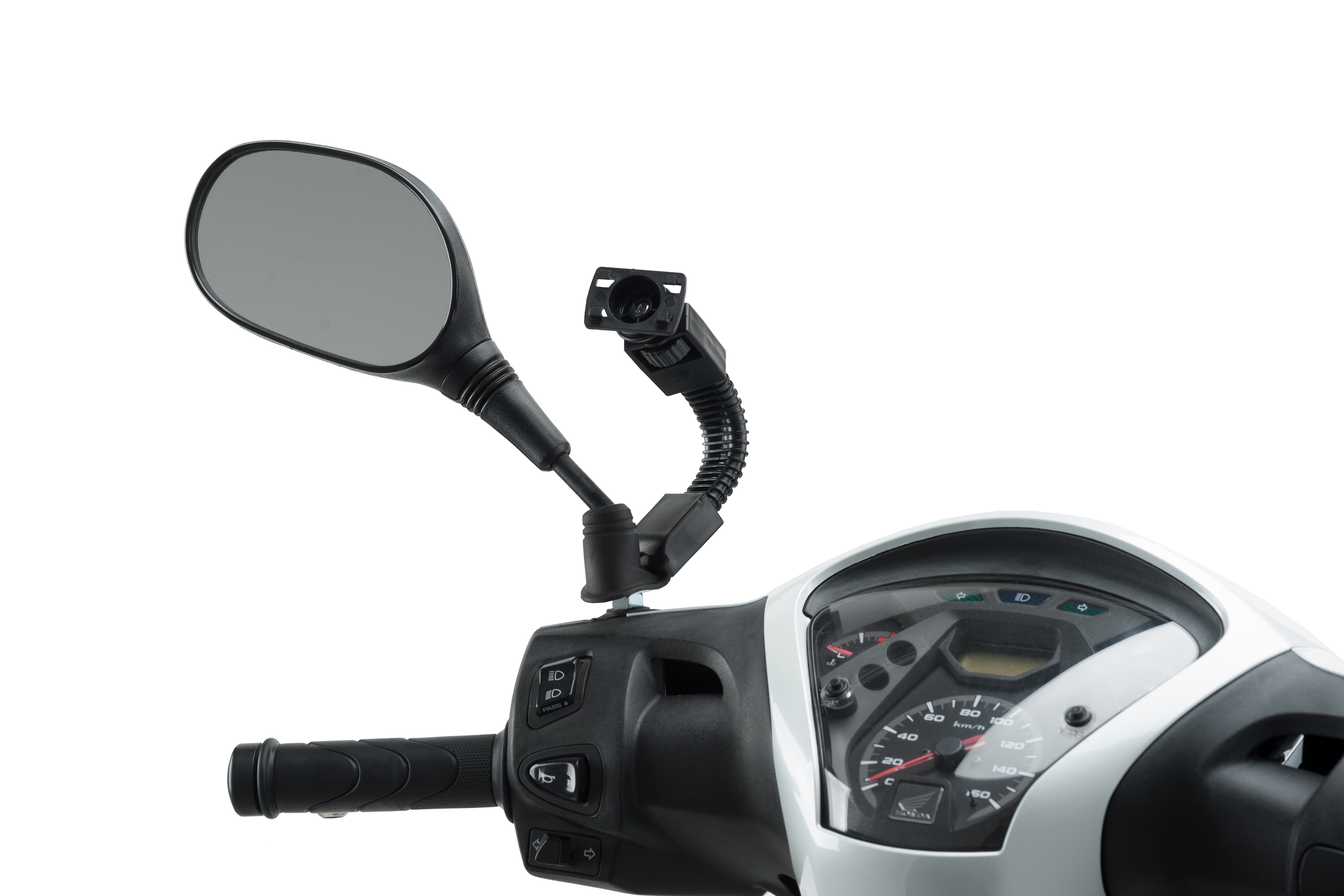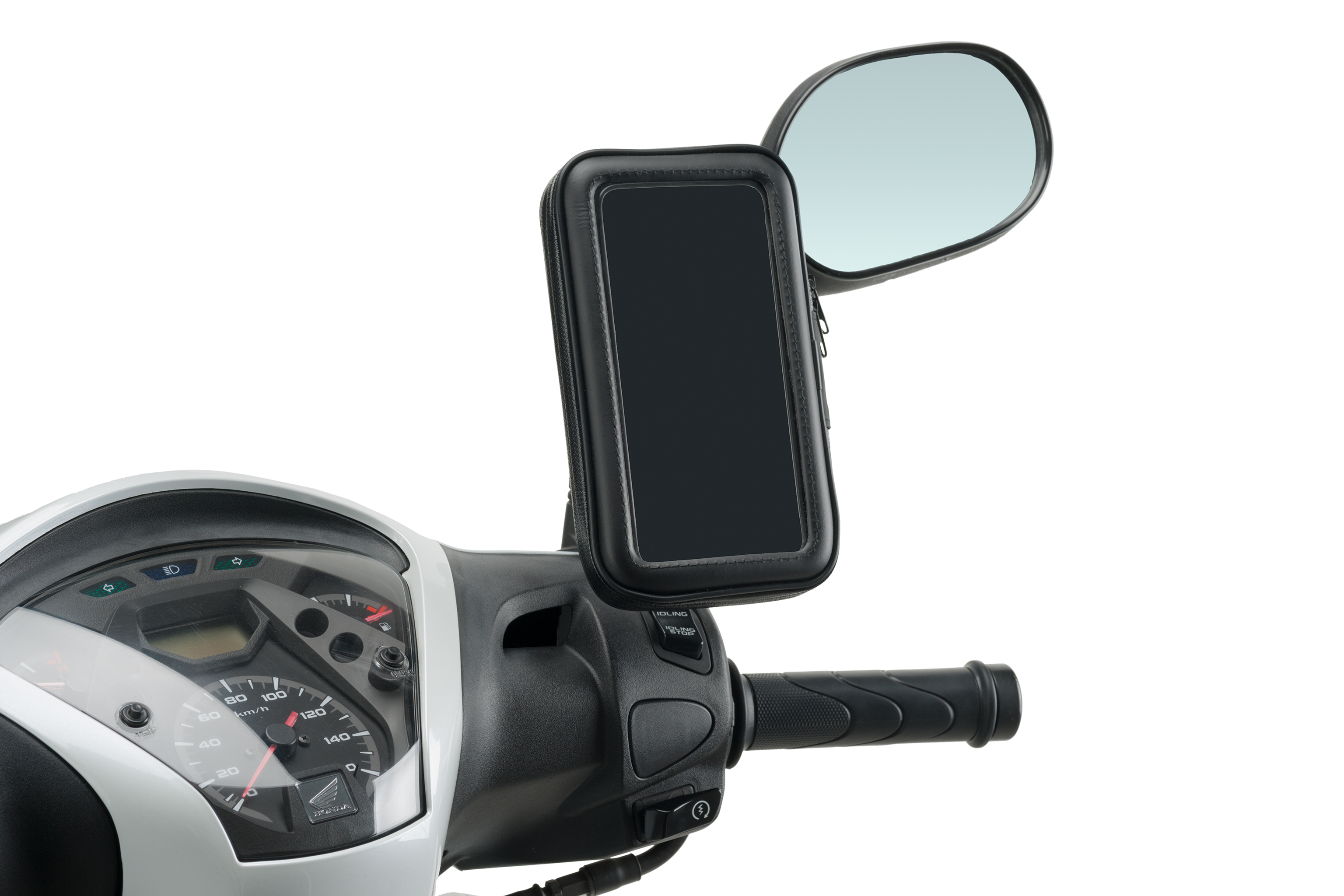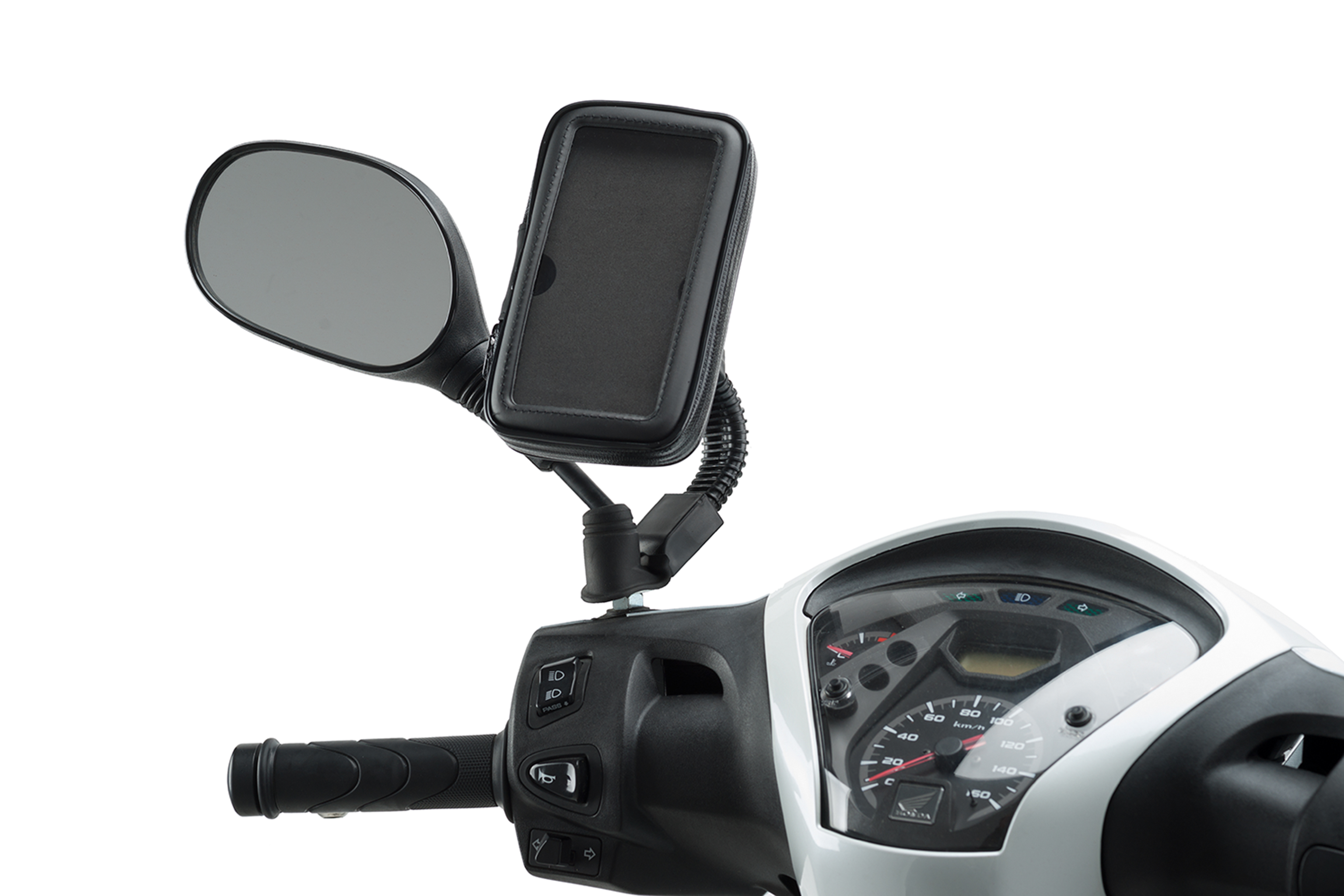 You can mount the phone holder on the base of the mirror, the mirror rod, on the handlebar and on the seat post of the motorcycle where it will be more immobilized against possible impacts or potholes on the road.
