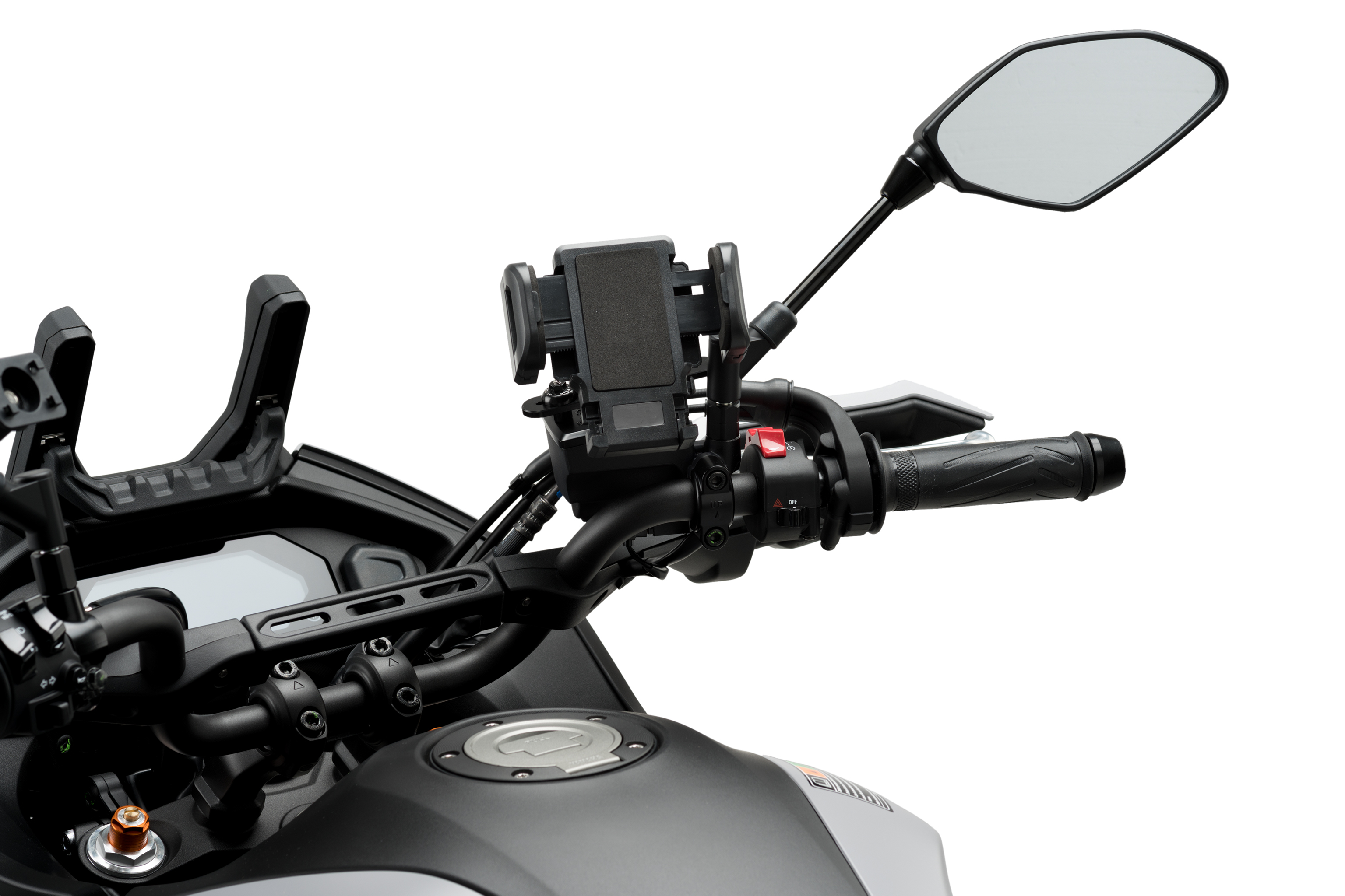 Thanks to the Puig phone holder you can use your smartphone as a browser without suffering for its integrity and security. In addition, in our catalog you will find a line of accessories related to your mobile phone and its protection during journeys of all kinds and with different weather scenarios.