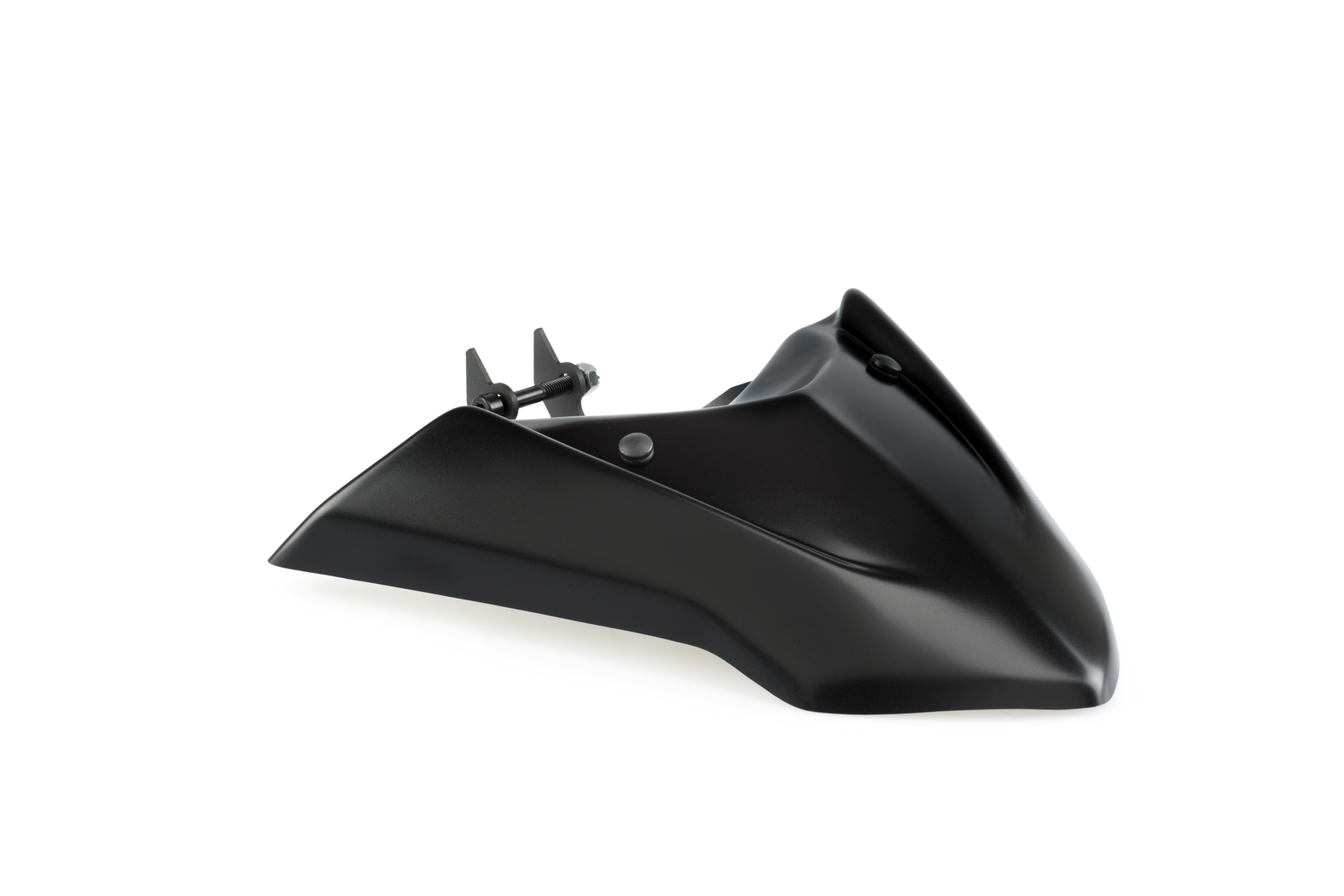 It is a piece whose objective is the protection against splashes and small objects, but its pointed shape has been designed to have a good aerodynamic penetration and thus help the aerodynamic coefficient of the motorcycle as a whole.