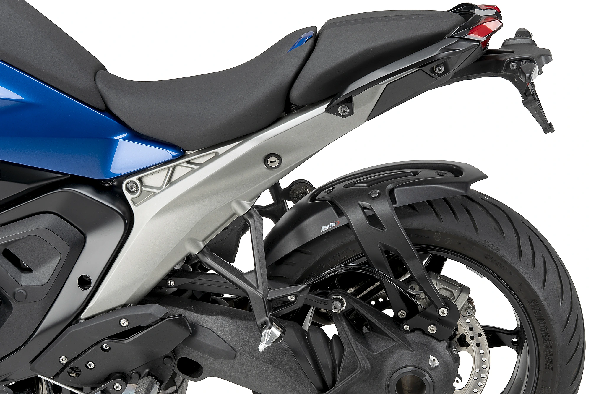 In this case, Puig offers you the chance to choose between three different models of mudguards to customize the motorcycle to your needs. Rear mudguard "S", ideal for Naked models. rear fender type "R", specific for R motorcycles and rear mudguard with aluminum support, breaker design with aluminum injection supports fixed to the swingarm of the motorcycle, specifically created for Crosstourer models.