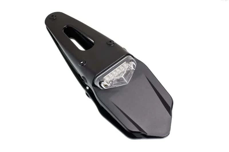 Puig homologated brake lights with plastic base are the ideal tuning accessory to highlight the rear of the bike. The piece is made of black plastic and the brake light, position light and license plate light, all of them integrated harmonically in the same set, which gives a more sporty look.