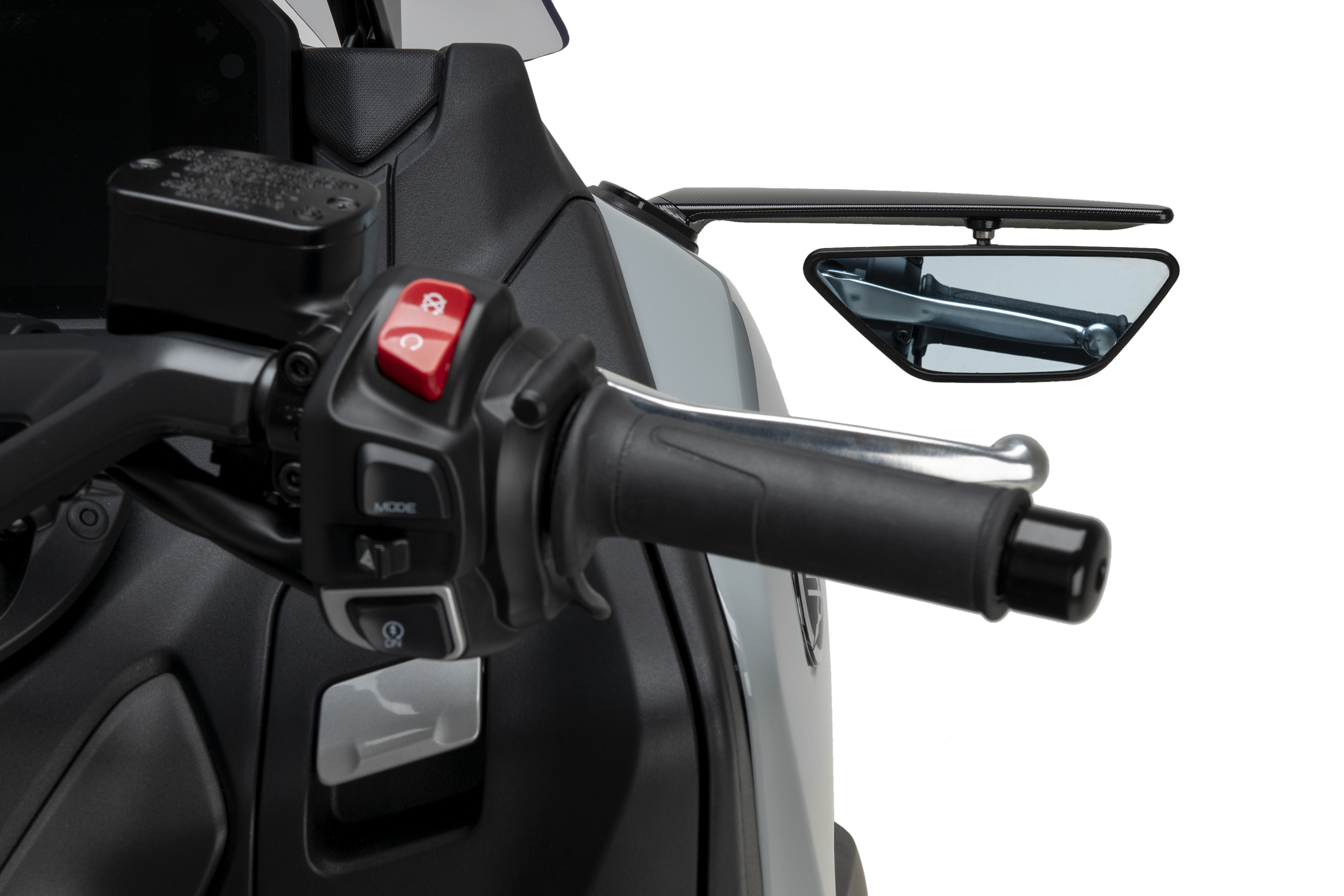 The spoiler-mirror has been developed with virtual wind tunnel technology thanks to Puig's extensive experience in top competitions such as the MotoGP and SBK World Championships, inspired by the latest advances in the field of aerodynamics. It is machined from a block of aluminum and has an elegant black anodizing for a great finish.