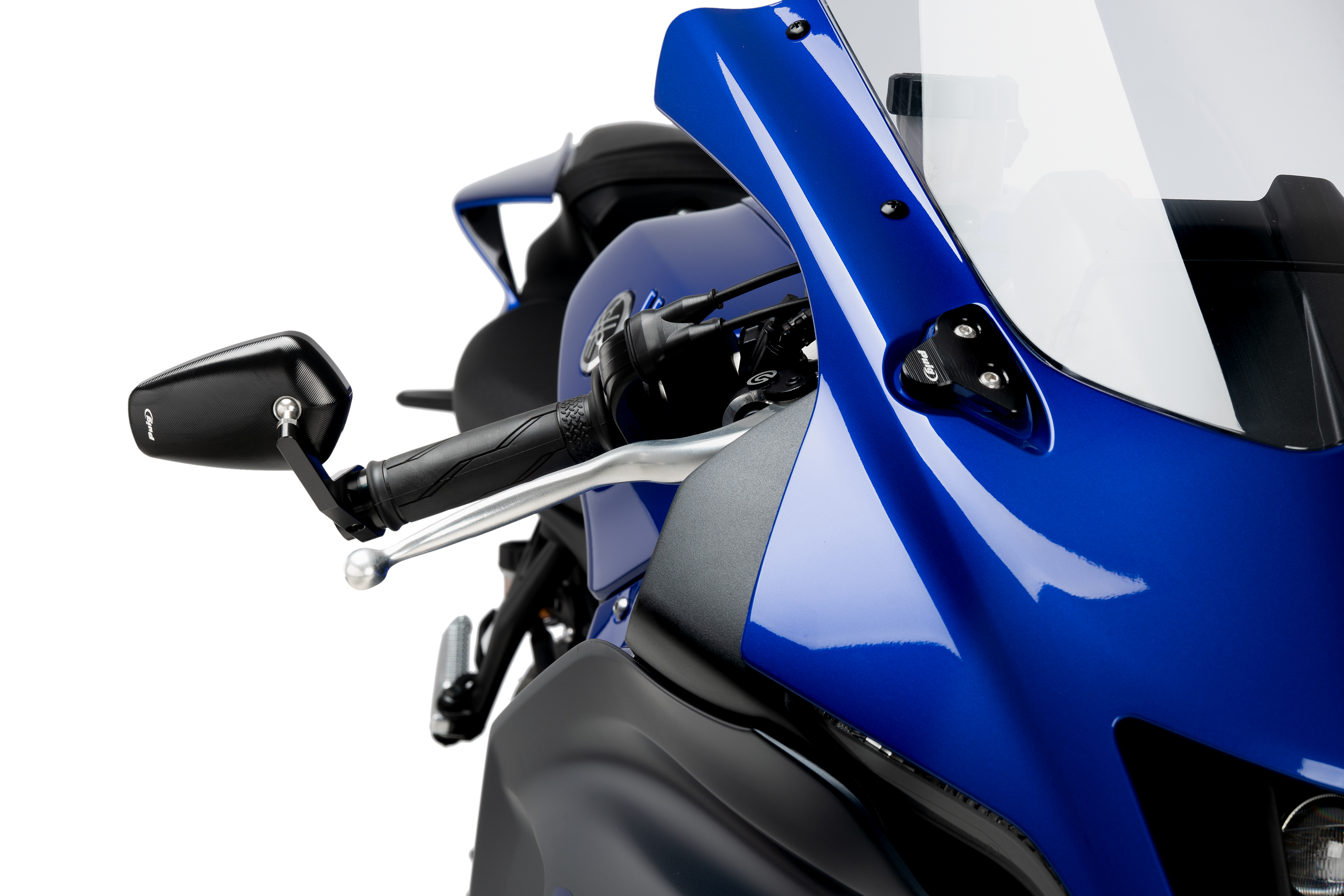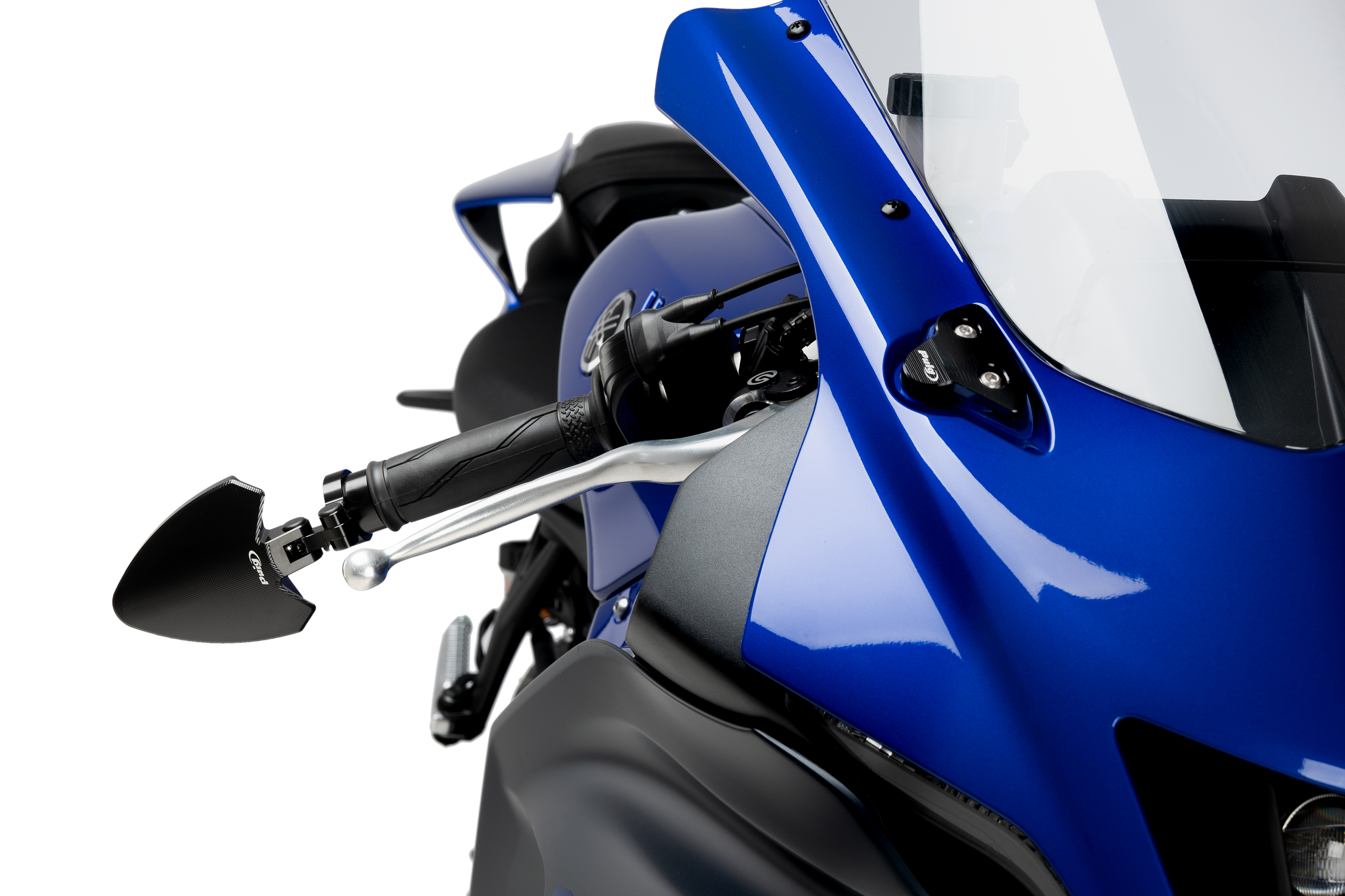 The pieces are made from an aluminum block anodized in black, a tone that matches any sporty model. Its design is specially designed to not stand out on the fairing, maintaining its shape and structural functionality.