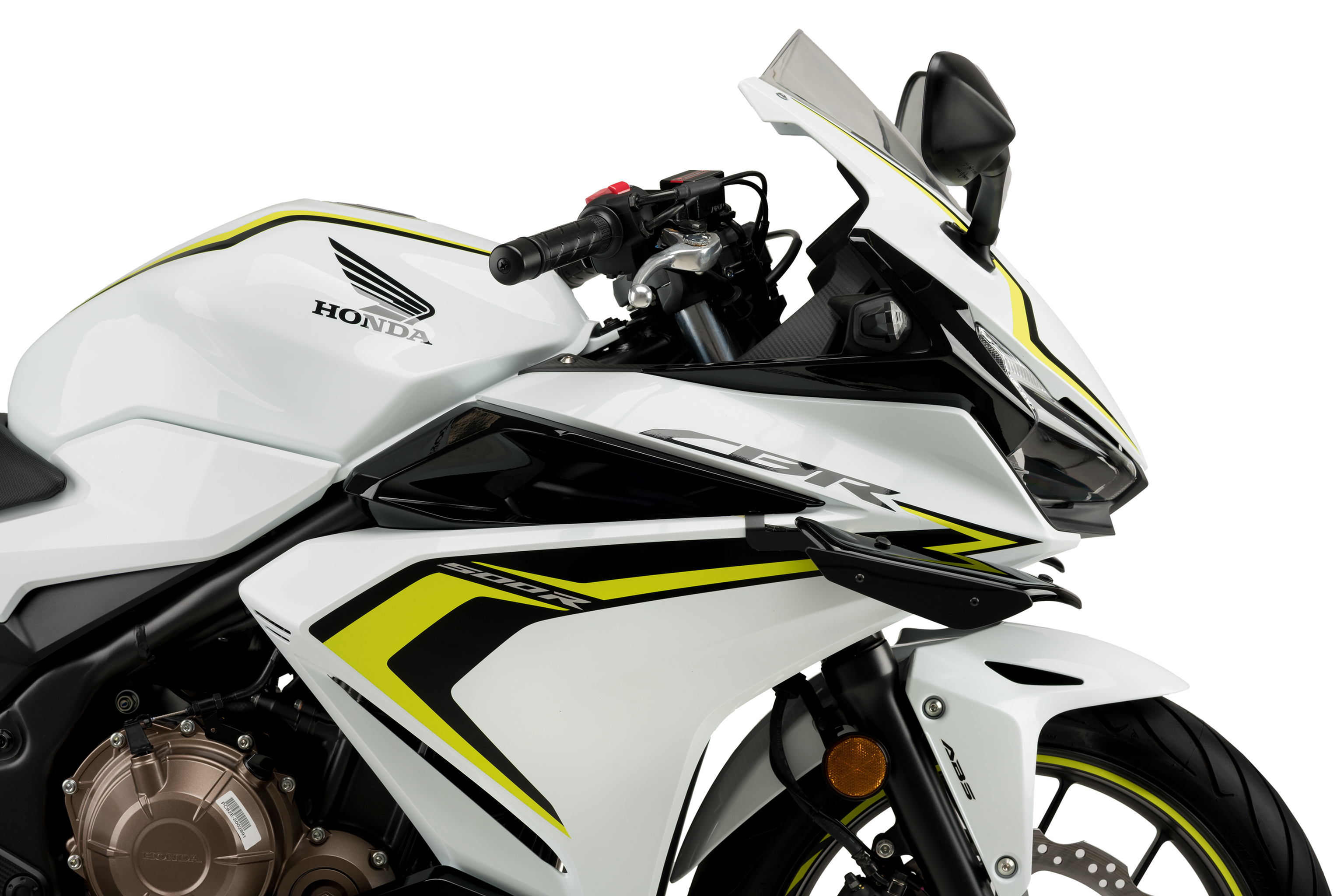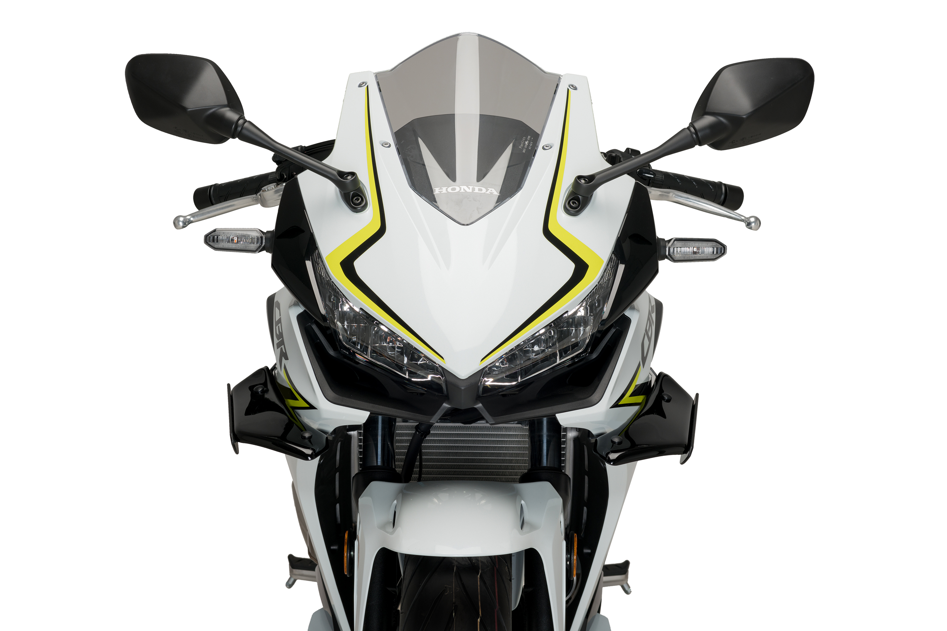 Now you can benefit from the racing aerodynamic technology in your motorcycle. Puig Downforce Sport spoilers have been developed thanks to the experience and tests carried out by the Kawasaki Racing team on the WorldSBK championship circuits. Get the ultimate racing touch and improve the cornering of your motorcycle with these Sport spoilers.