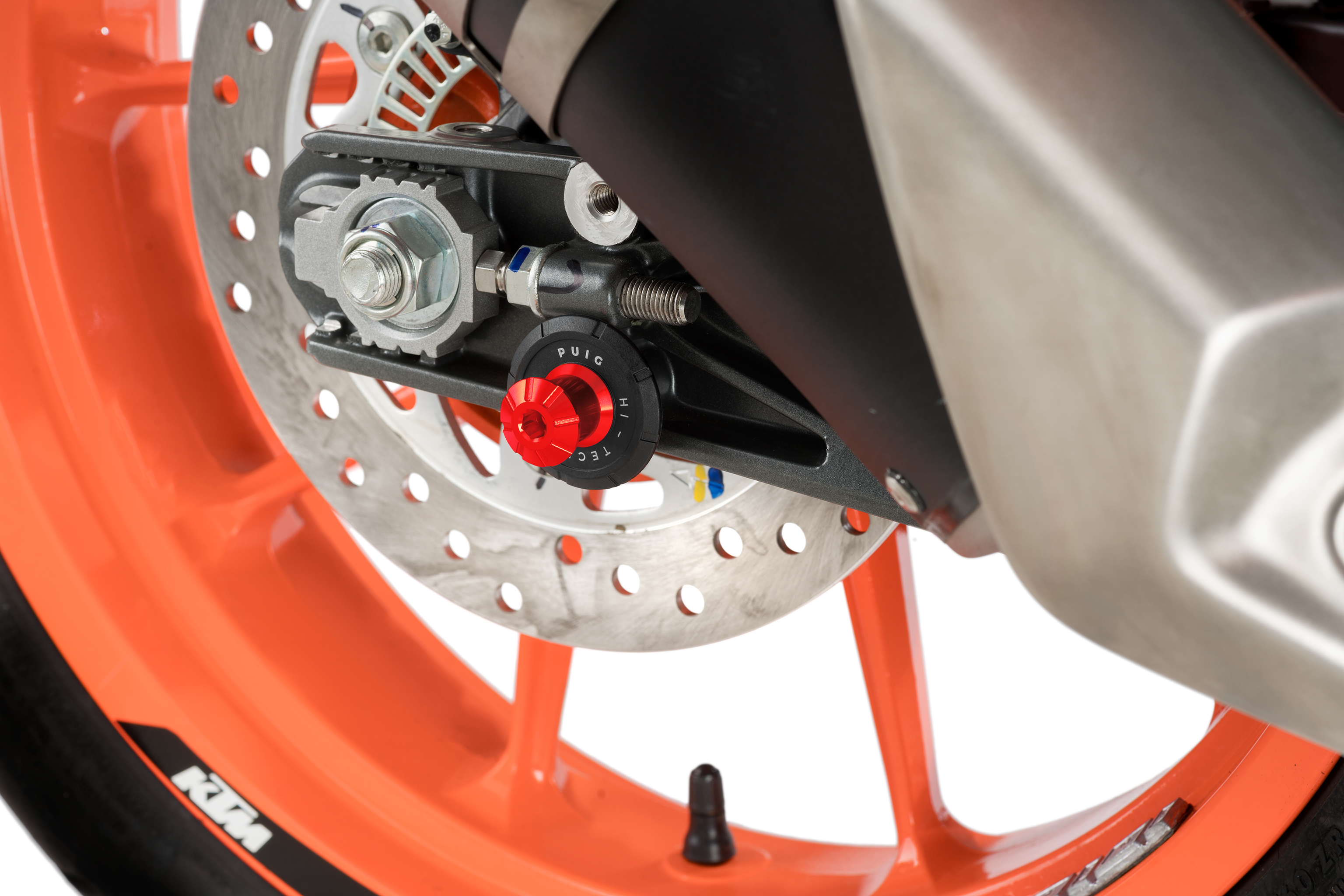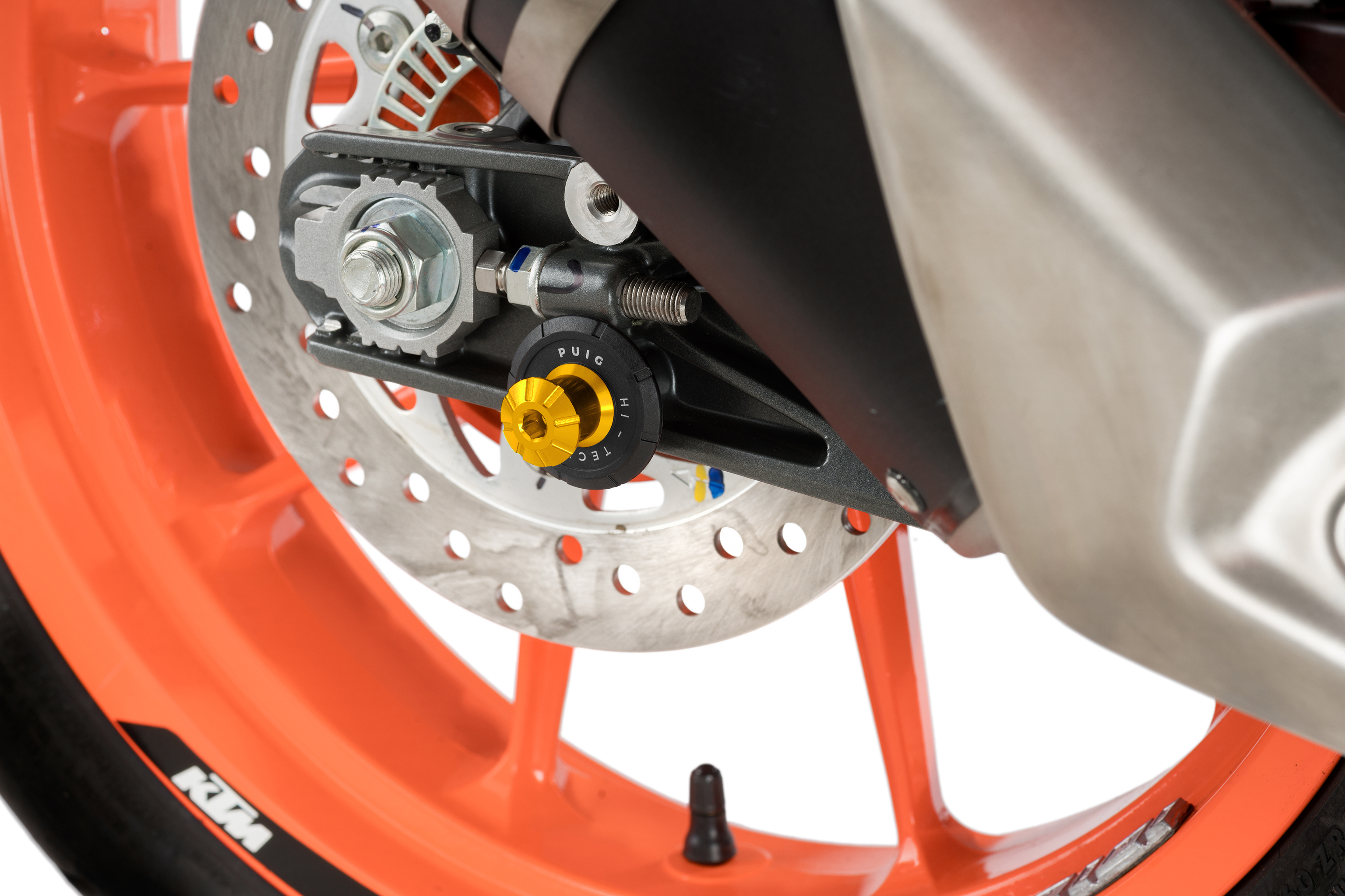 Spools work as a guide to fit a stand and easily raise your motorcycle, quickly and safely. In this case, we present the Spool Pro by Puig. Manufactured from an anodized aluminium billet (reduced weight of 32 gr), it will guarantee the protection of the swingarm from possible scratches thanks to the fact that it comes with a black nylon washer with the Puig Hi-Tech Parts etched on it.