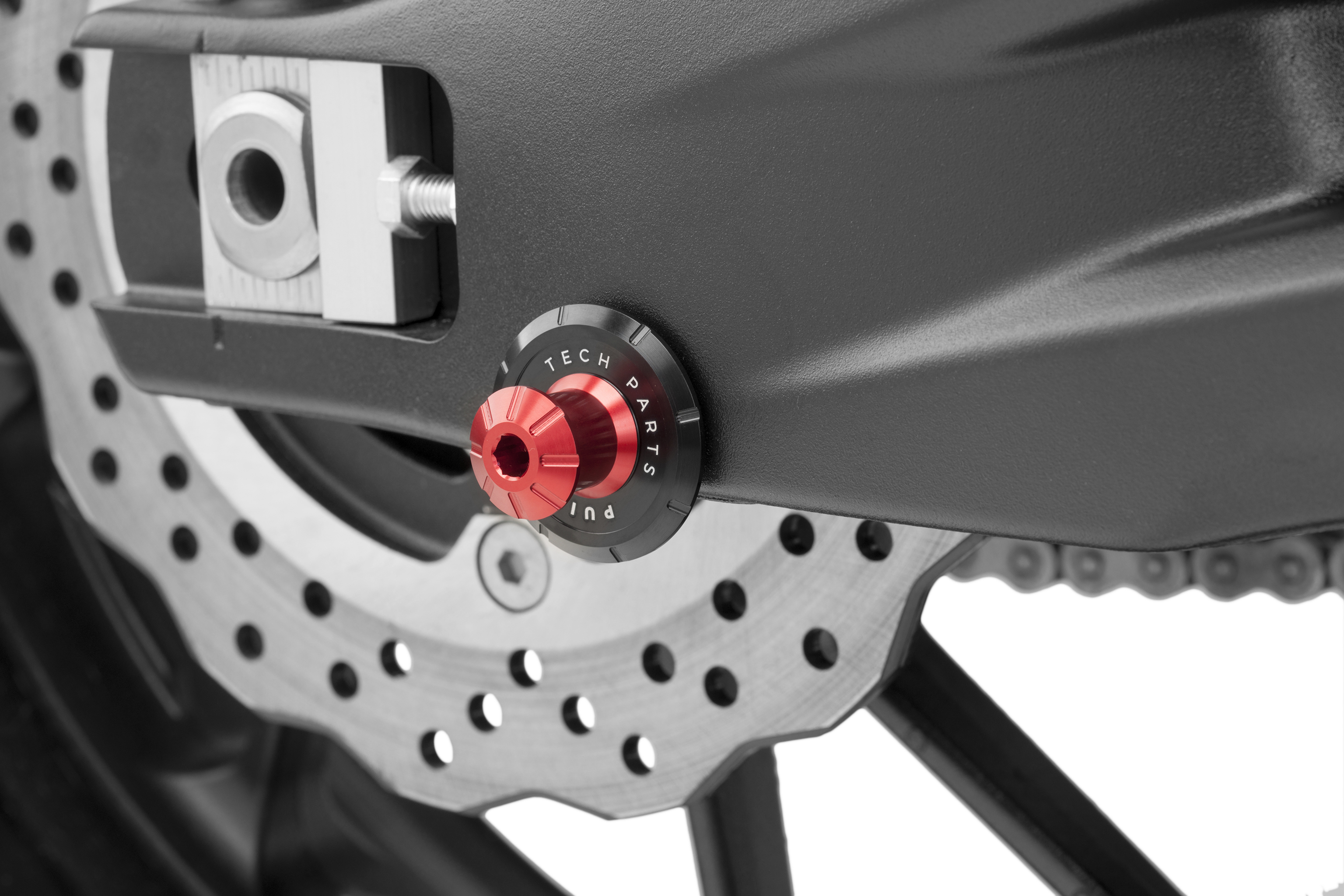 Spools work as a guide to fit a stand and easily raise your motorcycle, quickly and safely. In this case, we present the Spool Pro by Puig. Manufactured from an anodized aluminium billet (reduced weight of 32 gr), it will guarantee the protection of the swingarm from possible scratches thanks to the fact that it comes with a black nylon washer with the Puig Hi-Tech Parts etched on it.