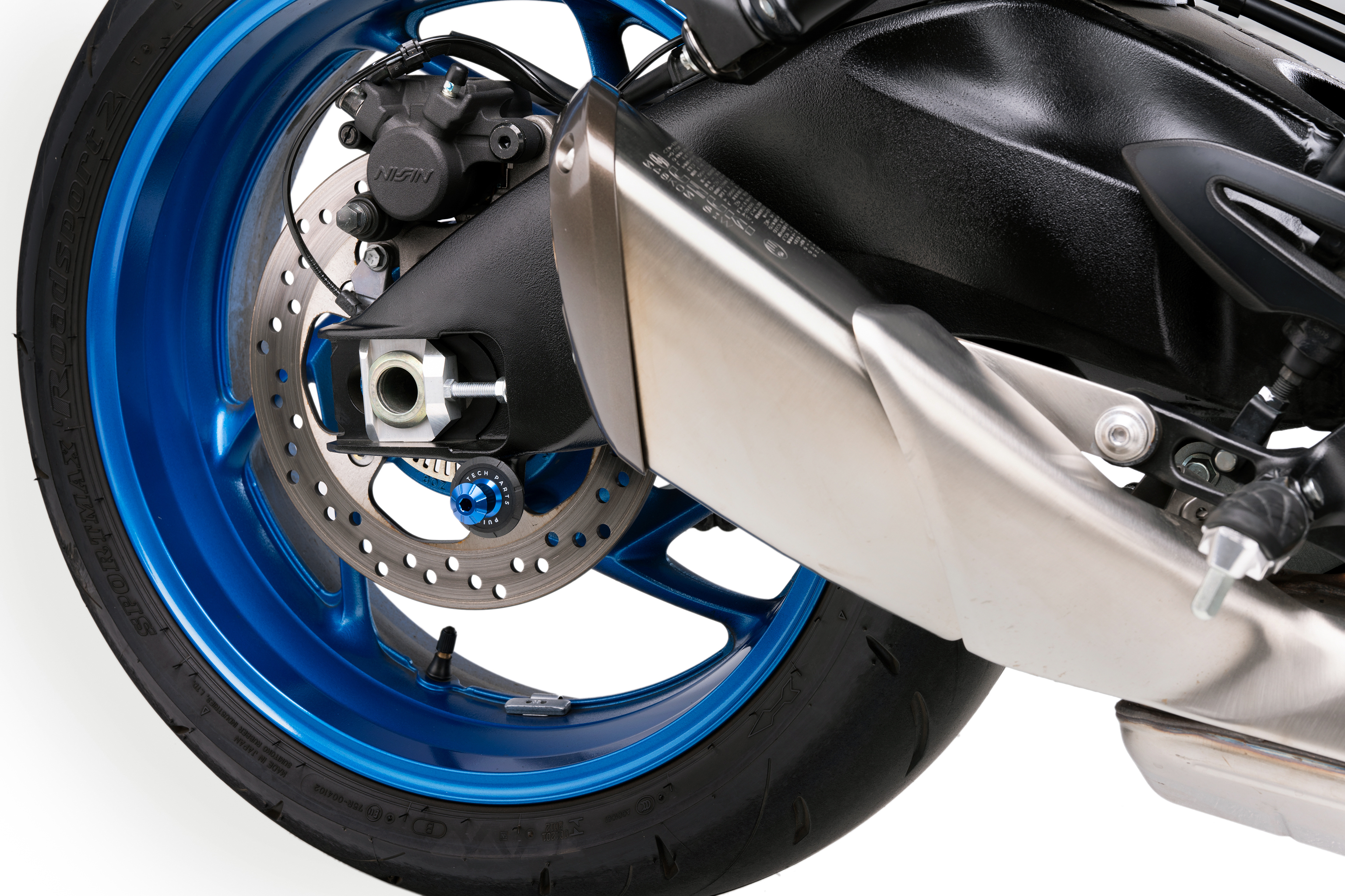 The swingarm is protected by the incorporation of the nylon washer.