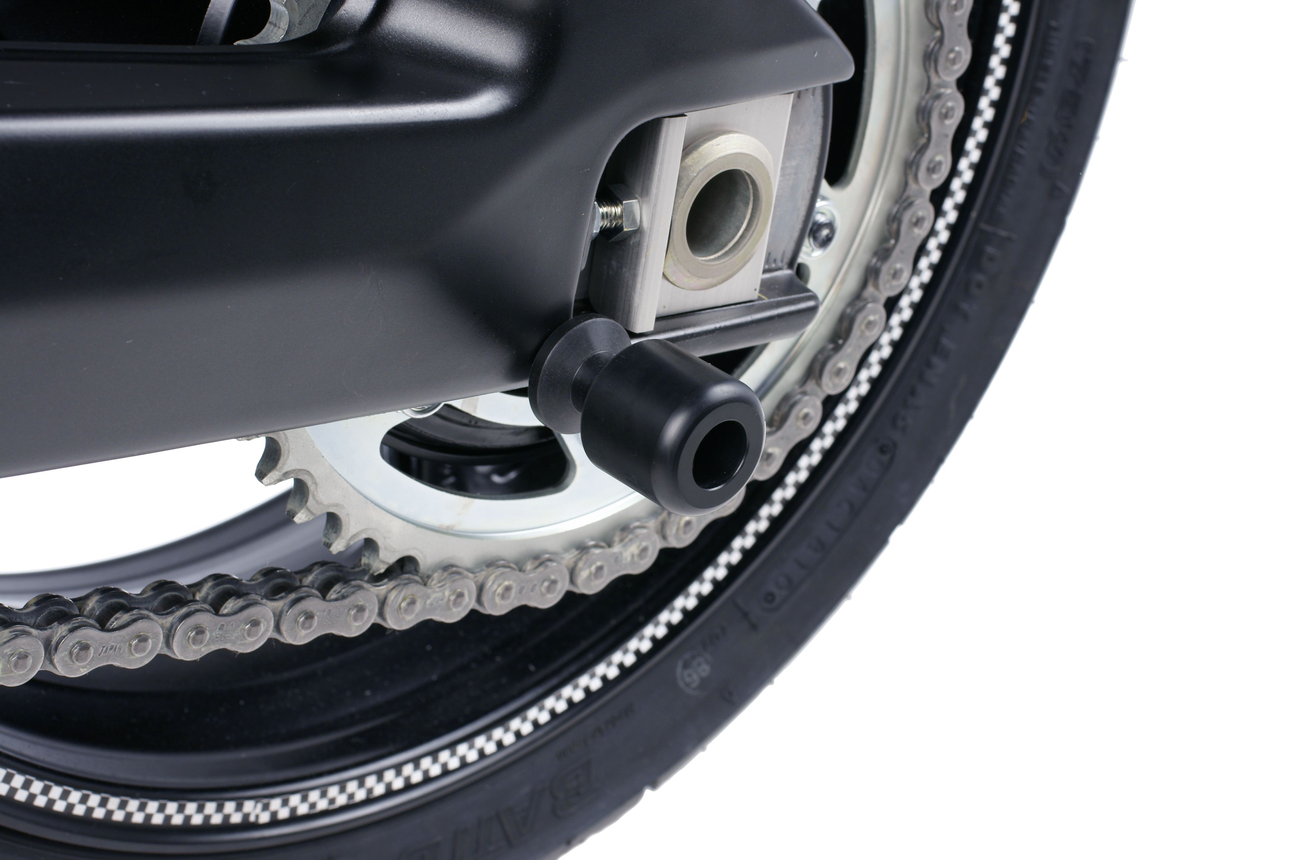 The part, in addition to its functionality, also fulfils the purpose of protecting the swingarm thanks to the incorporation of the nylon washer.