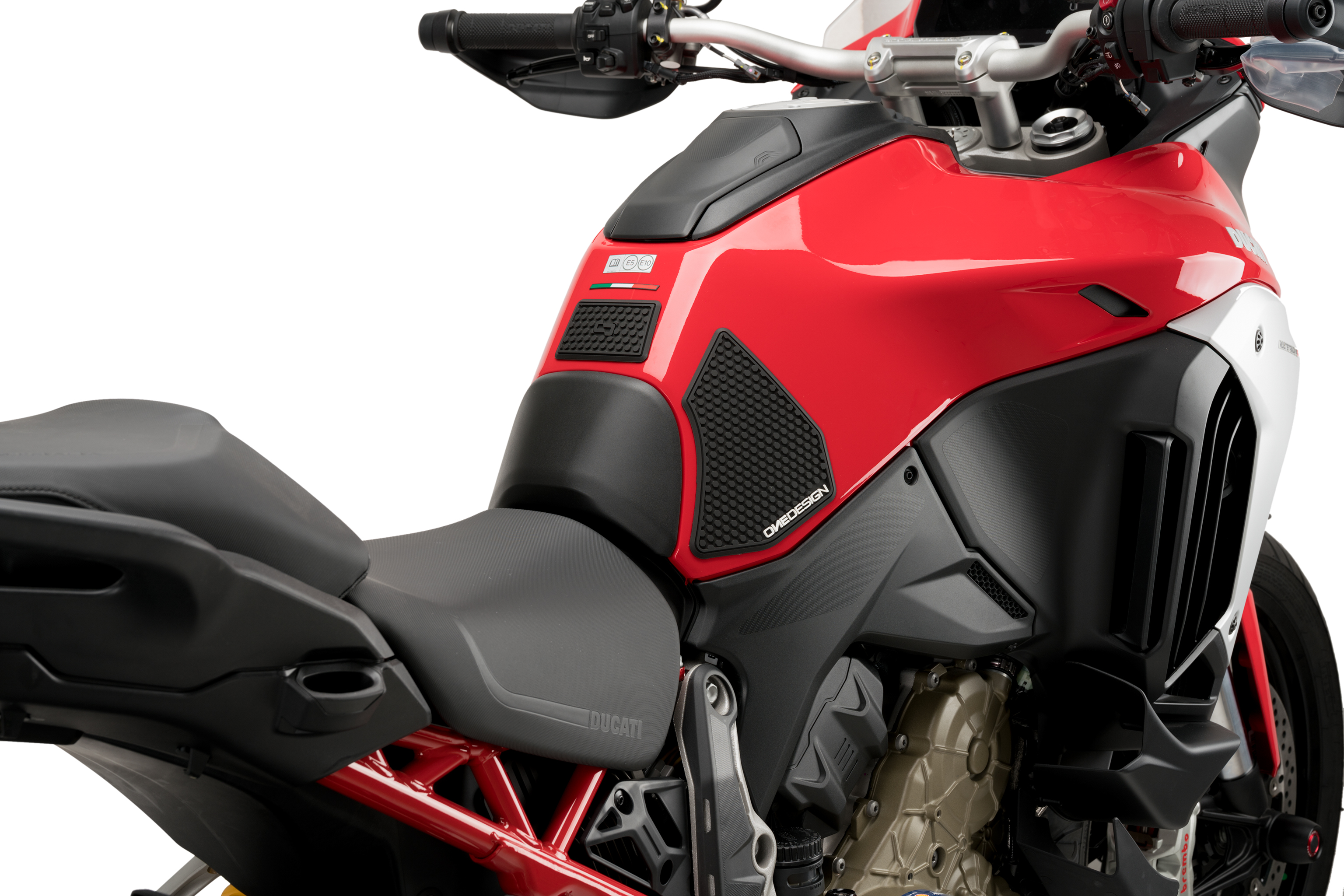 Customize the side of your motorcycle's tank with the Puig side tank protectors. Manufactured in rubber, they provide a unique and sporty look to the motorcycle, avoiding scratches in a sensitive area. Thanks to the Onedesign design, this piece gives the tank greater grip and increases the rider's control over the bike. In addition, it make you feel the pleasant touch of the rubber and it’s easy to place along the lines of the deposit itself.