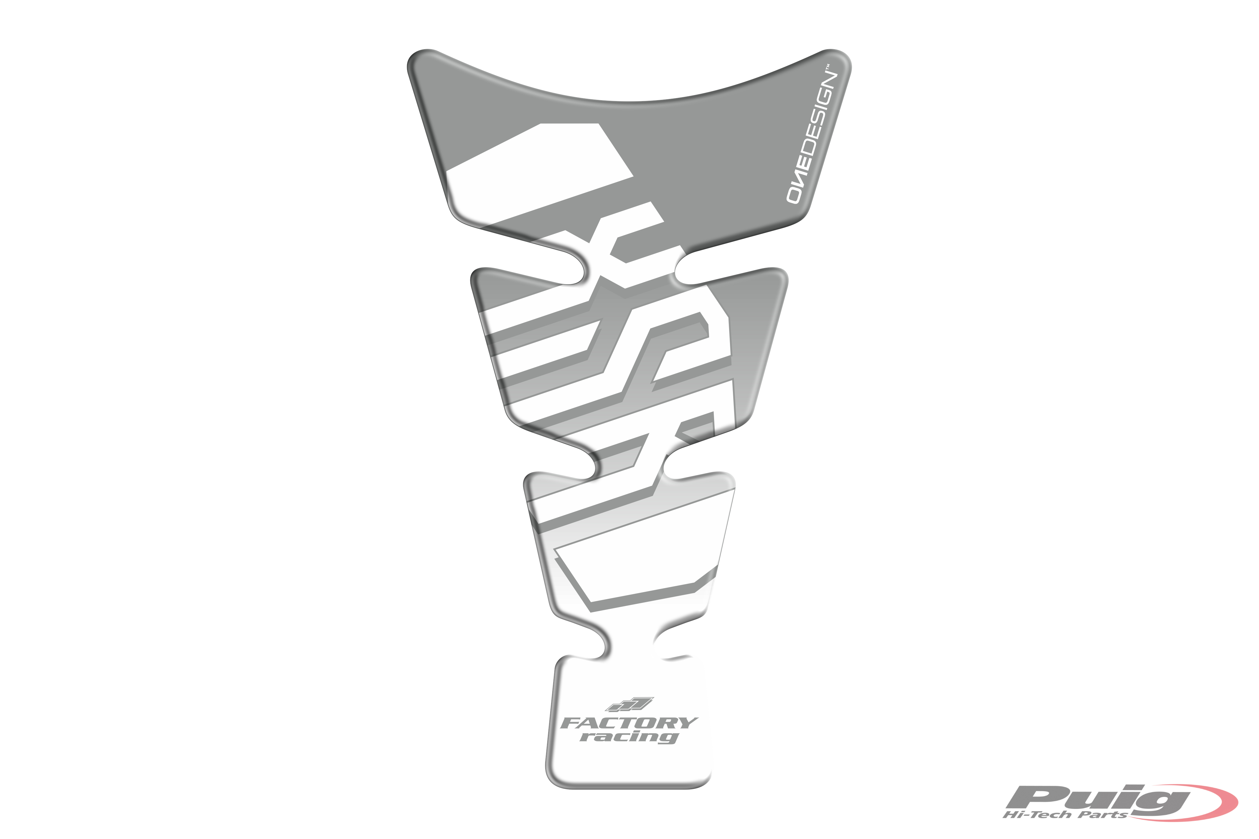 Tank pad with a standard form featuring the motorcycle model in the central section, either black or silver depending on the color of bike tank. We have two colors: black and silver.