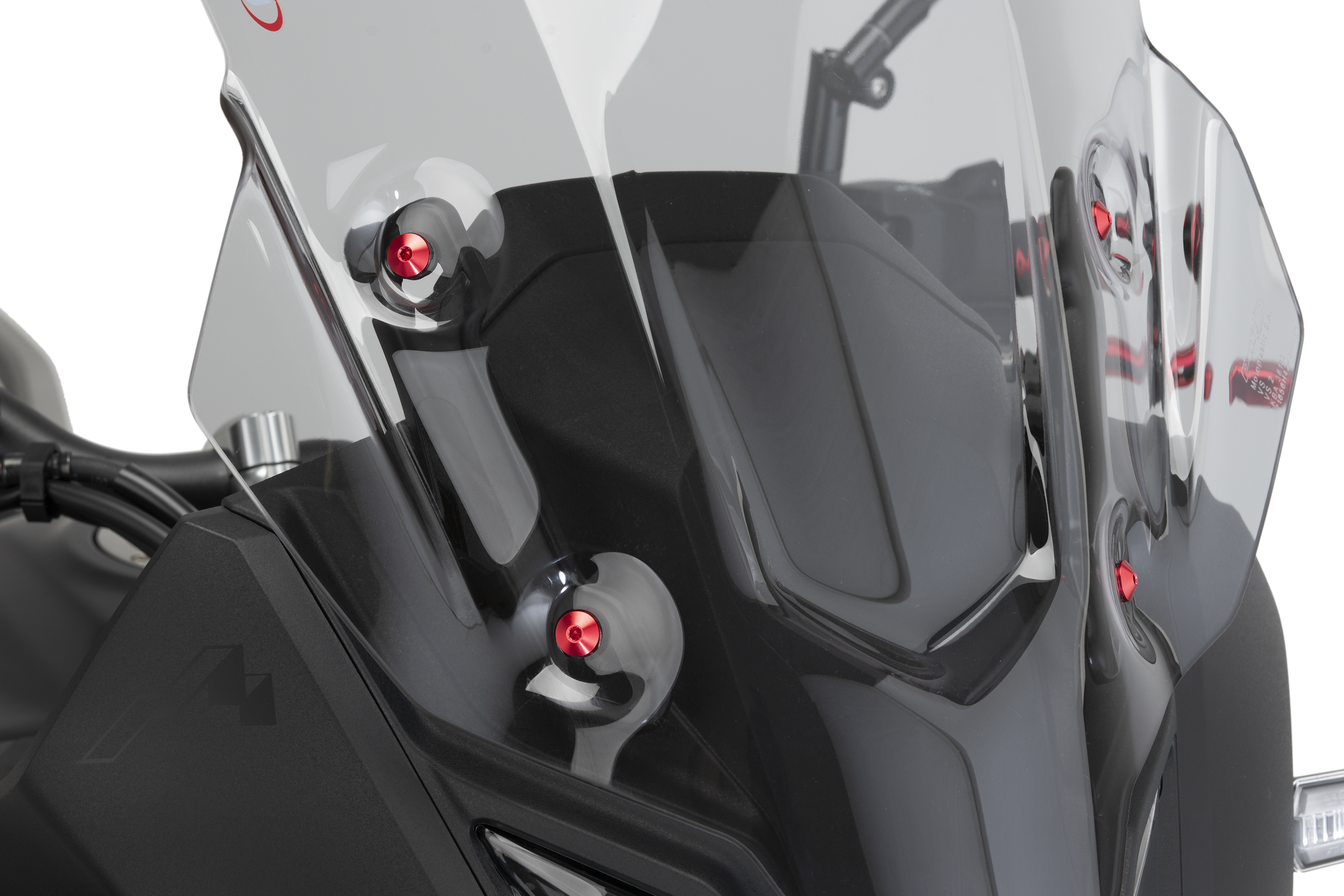 If you want to change the screws that hold your motorcycle’s screen, Puig offers the possibility of replacing them with another type. Parts made of aluminum (Ergal 7075) and anodized in different colors. This high strength and durable material affectsminimally the final weight of the unit.