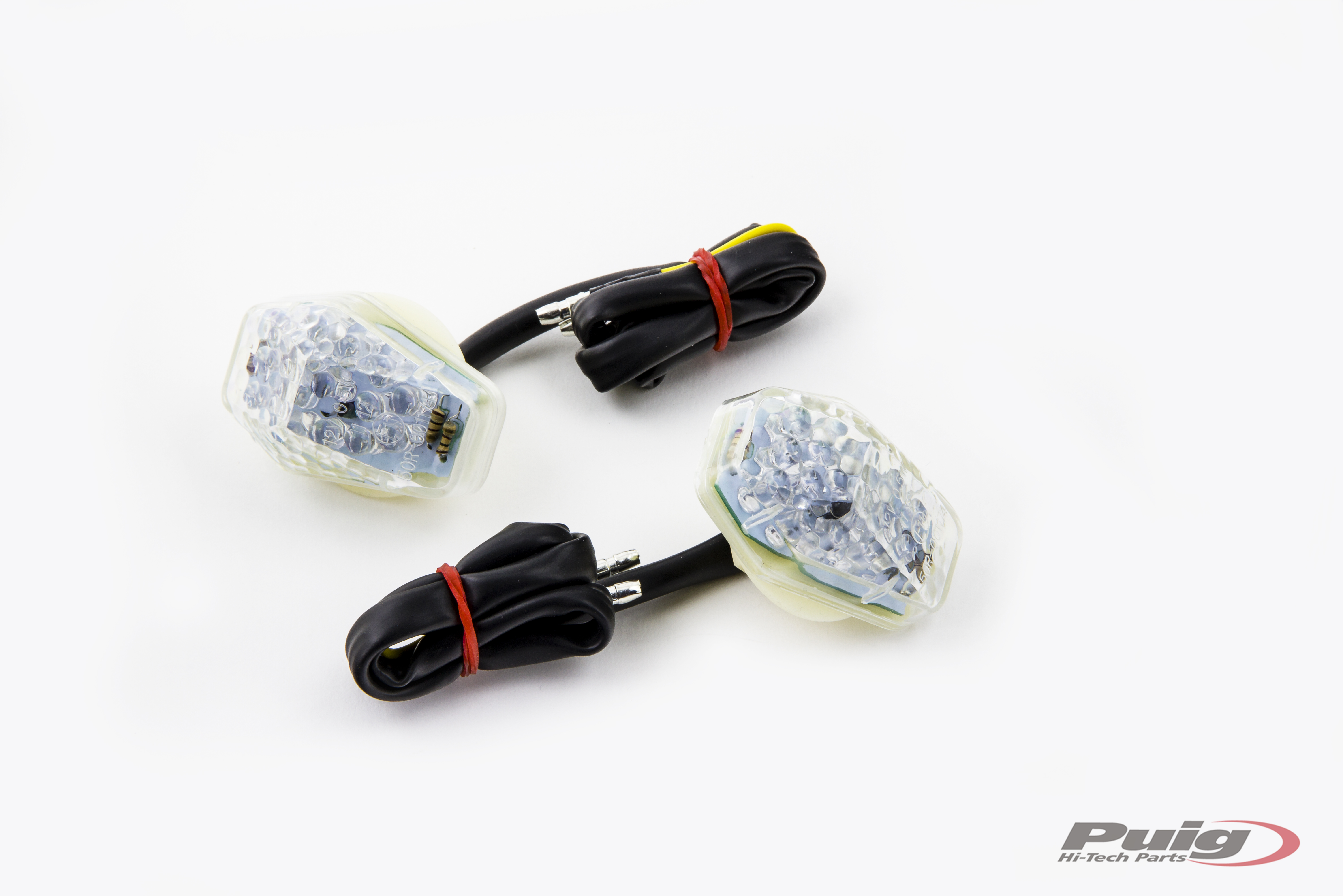 If you prefer the indicator to be part of the bike's body, the Puig integrated turn signal kit is your best option. Turn signals integrated into the fairing of the motorcycle and available in four different models for Honda, Kawasaki, Suzuki and Yamaha manufacturers.