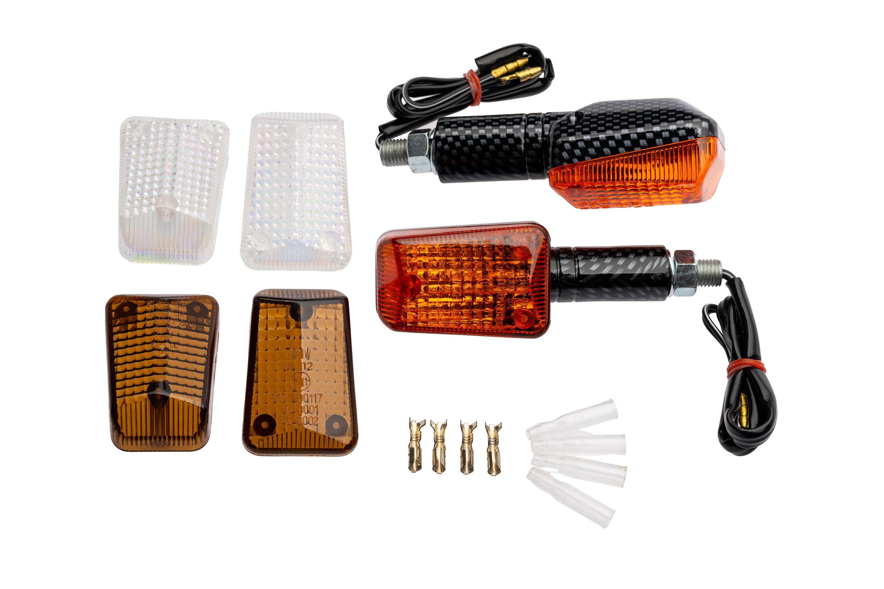 Short-arm carbon-look set with amber glass + smoked lens + laser lens