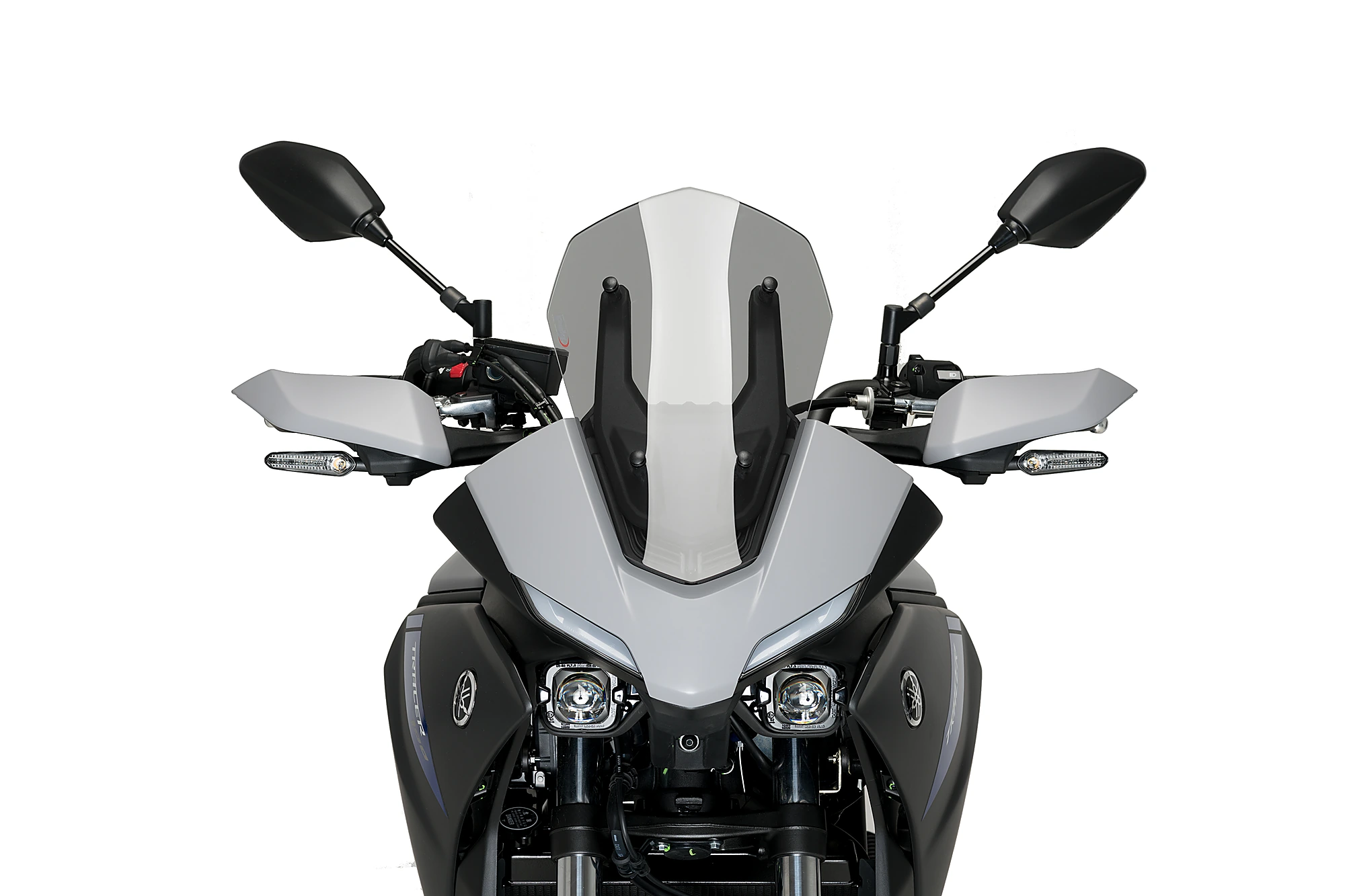 Emphasize the sport character of your Yamaha Tracer 700 with the Puig Sport screen, developed to maintain the aerodynamic protection while integrating its futuristic and aggressive design. The height of the Sport screen guarantees perfect visibility of the road. In addition, you can choose between clear, light smoked, dark smoked, black and other colors, which combine perfectly with the finish of your Tracer.