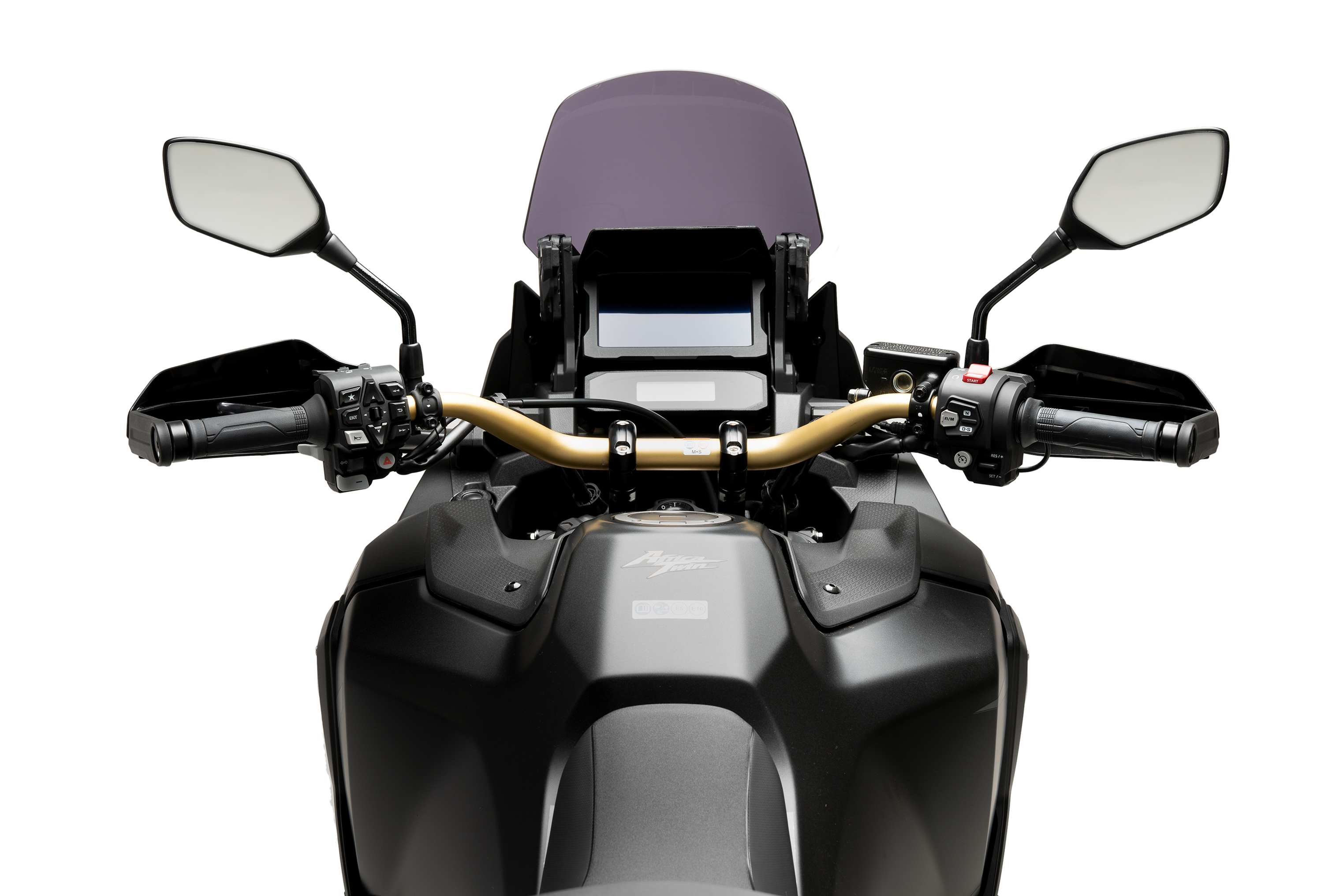The Sport Screen has been developed for urban riding, off-road use, and short trips. In addition to providing an aesthetic improvement, its compact size with a flat top allows for a clear field of vision and greater maneuverability on the motorcycle. For riders seeking greater aerodynamic protection, the touring version is available.