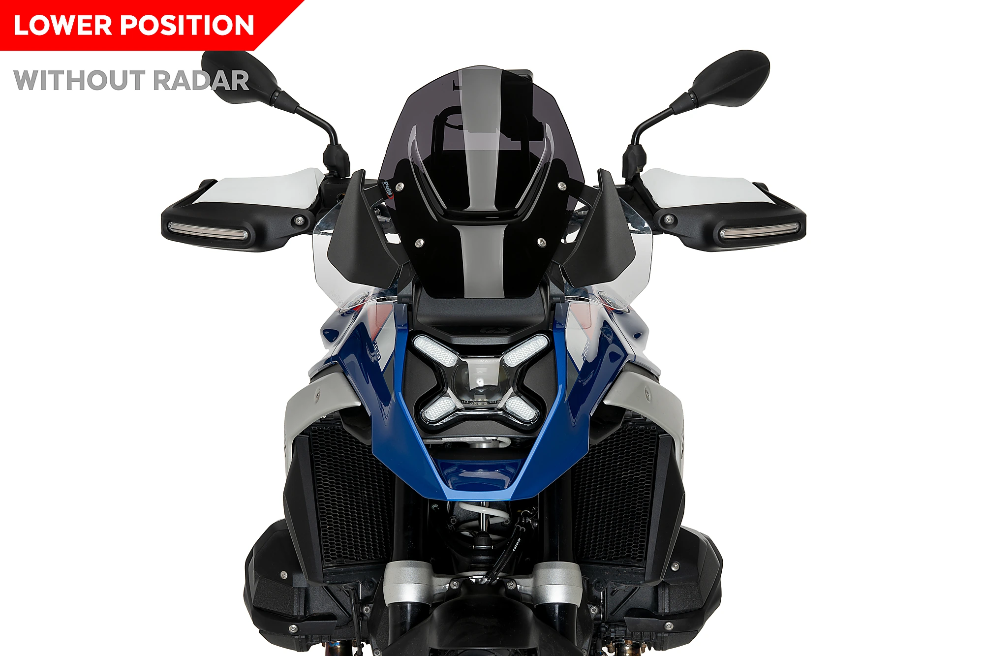 The frontal slit of the Sport windshield is designed to align with the lifting mechanism of the motorcycle, providing both rigidity to the windshield and giving it a sporty look that seamlessly integrates with the front of the GS 1300. In the windshield with reference 21794, the lower part of the windshield perfectly conforms to the contour of the ACC radar, the innovative driver assistance system Active Cruise Control that the GS 21300 can incorporate, ensuring no interference with its functions