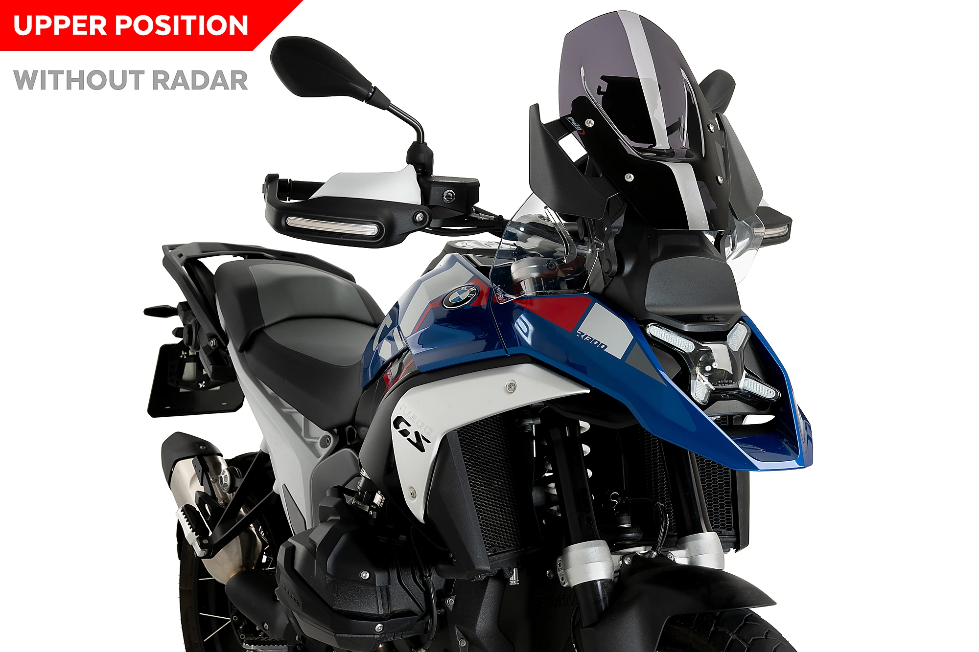 The windshield with reference 21839 has overall dimensions of 290mm in width by 385mm in height, while the 2179 has overall dimensions of 320mm in height by 290mm in width. The Puig Sport screen is 35mm lower than the original screen of the BMW R 1300 GS.