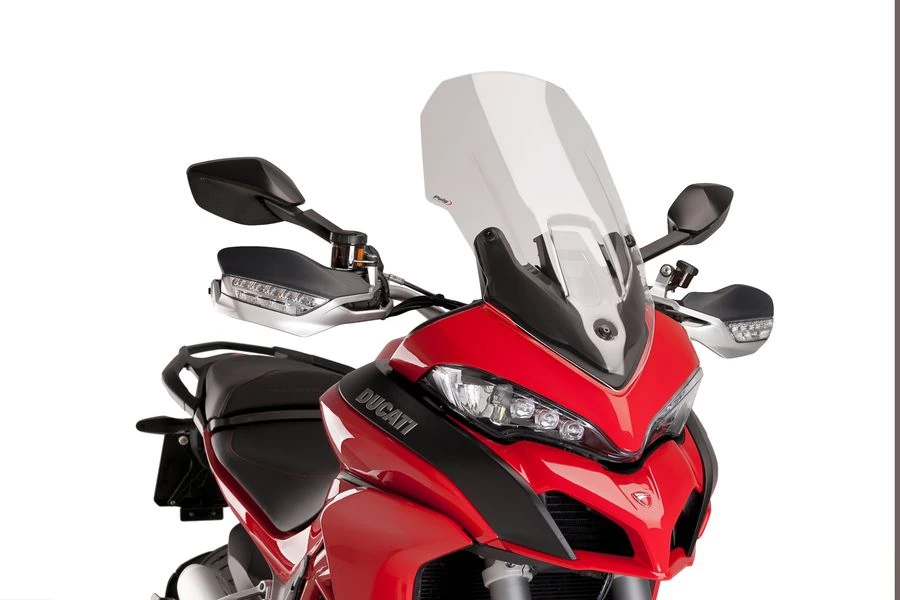 Touring screens, developed by Puig in Barcelona, are designed with the objective to aerodynamically protect the rider without affecting his/her field vision. In addition, these screens fit perfectly with the adventure style and aesthetics of the trail models thanks to their wide range of colors and different sizes.