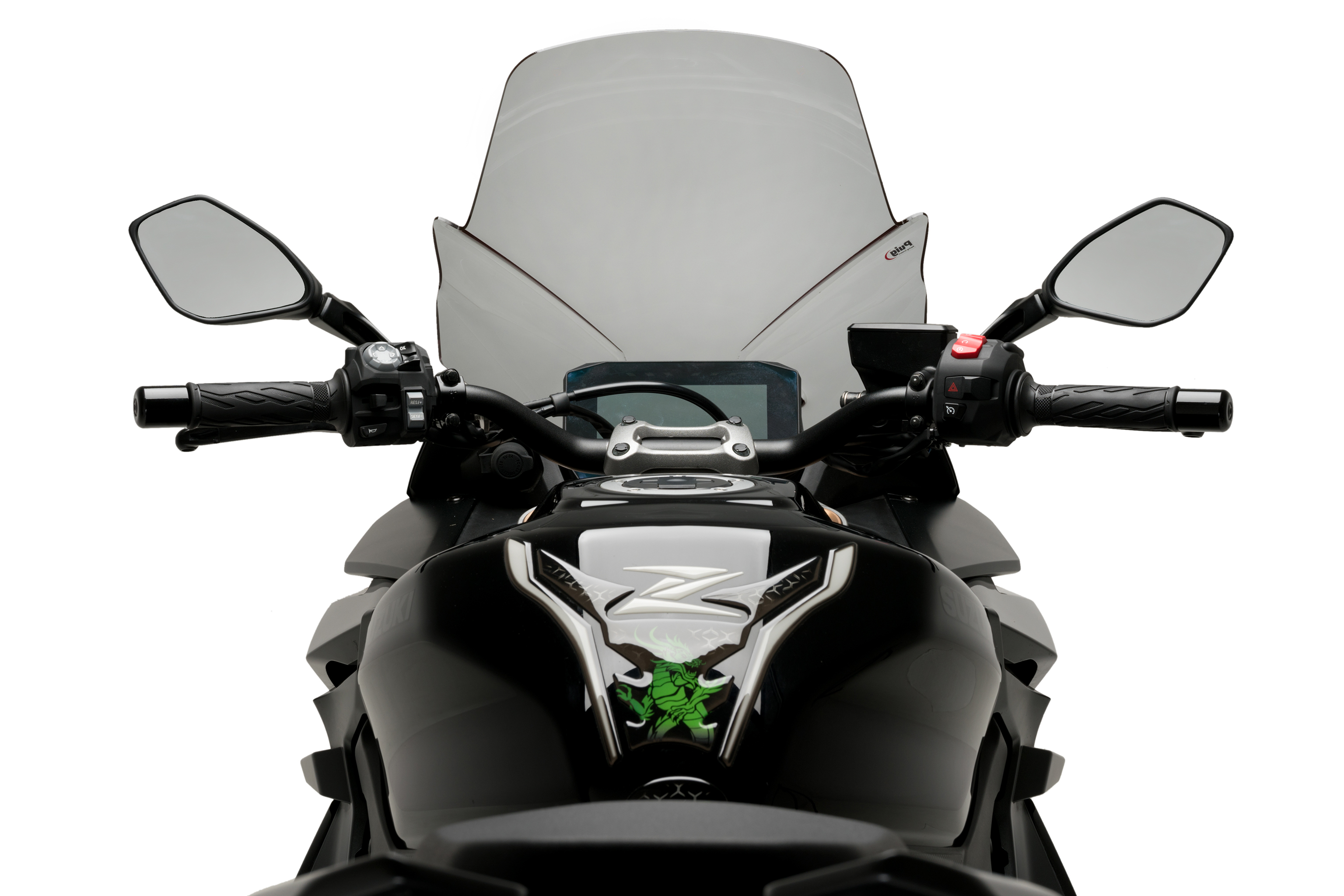 With the installation of the Touring screen a noticeable increase in aerodynamic protection is achieved while maintaining the sporty style and a clear field of vision.