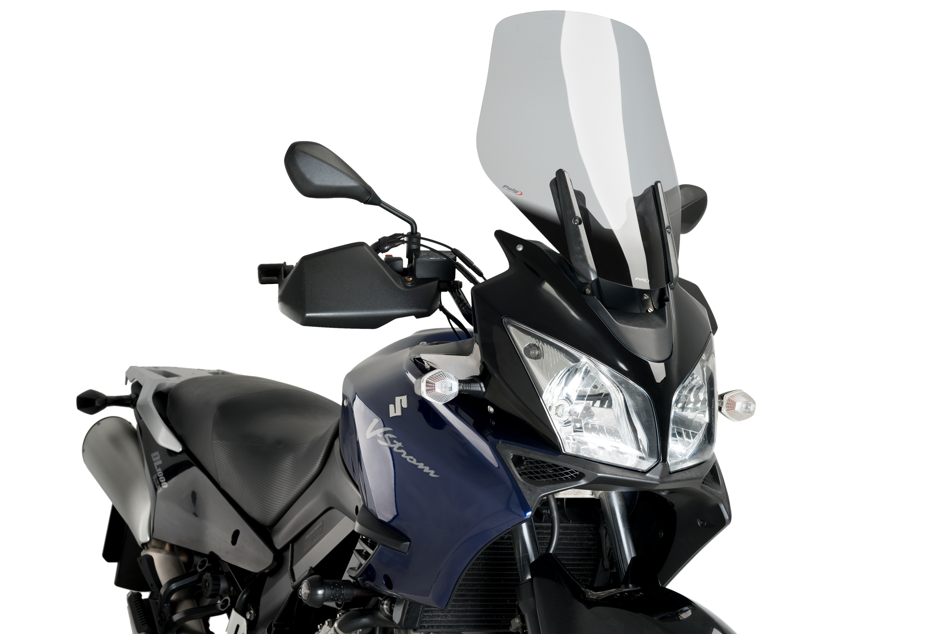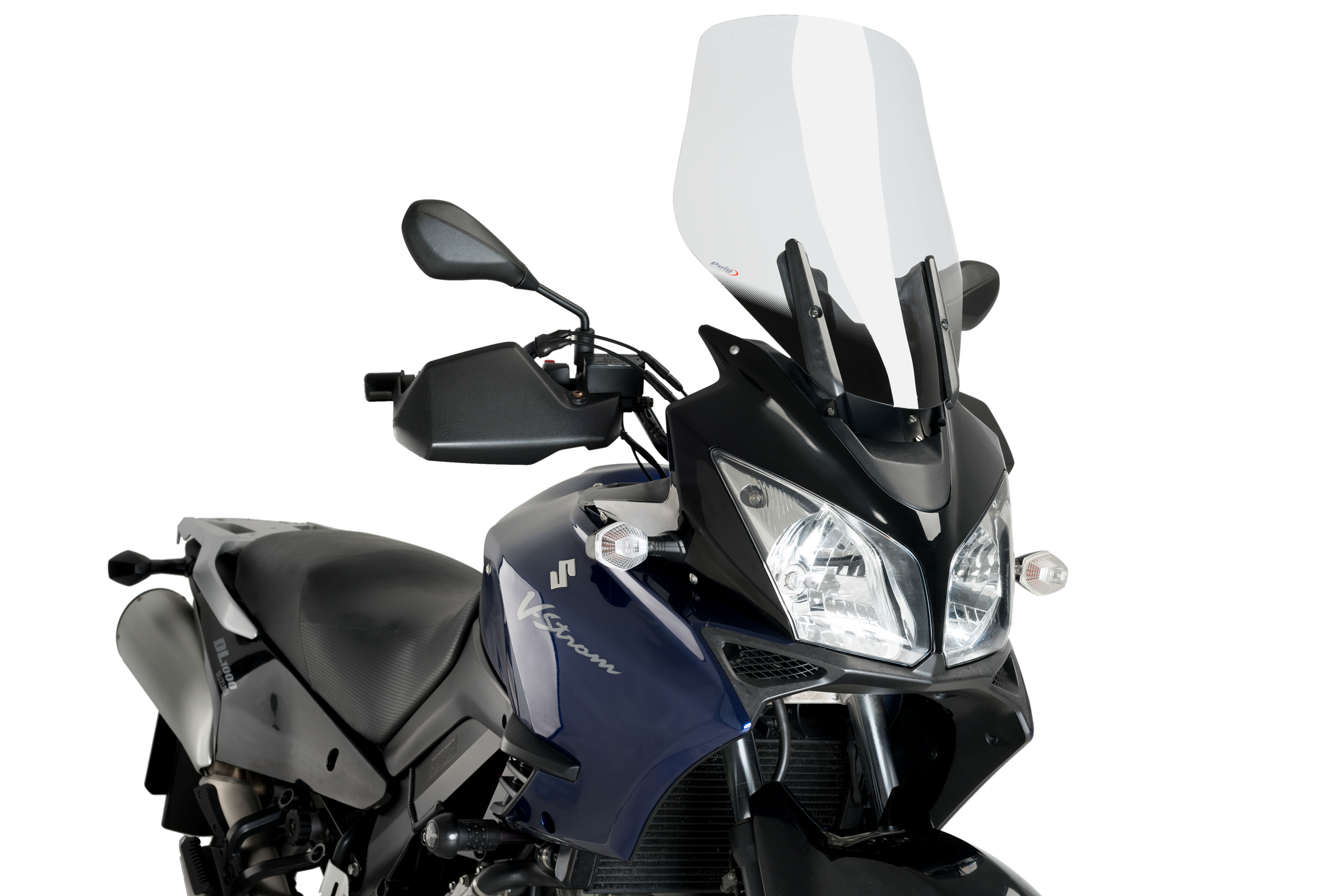 Touring screens, developed by Puig in Barcelona, are designed with the objective to aerodynamically protect the rider without affecting his/her field vision. In addition, these screens fit perfectly with the adventure style and aesthetics of the trail models thanks to their wide range of colors and different sizes.