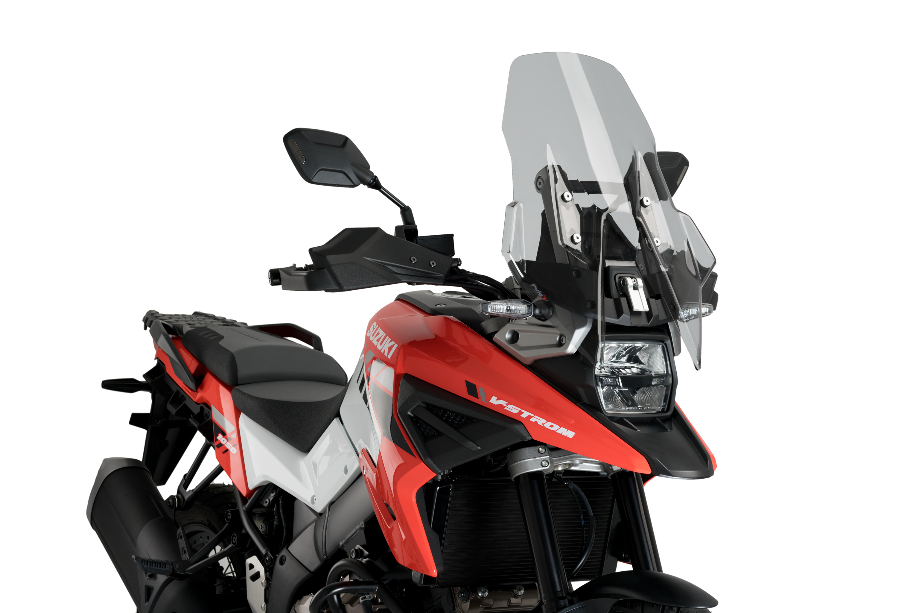 Touring screens, developed by Puig in Barcelona, are designed with the objective to aerodynamically protect the rider without affecting his/her field vision. In addition, these screens fit perfectly with the adventure style and aesthetics of the trail models thanks to their wide range of colors and different sizes.