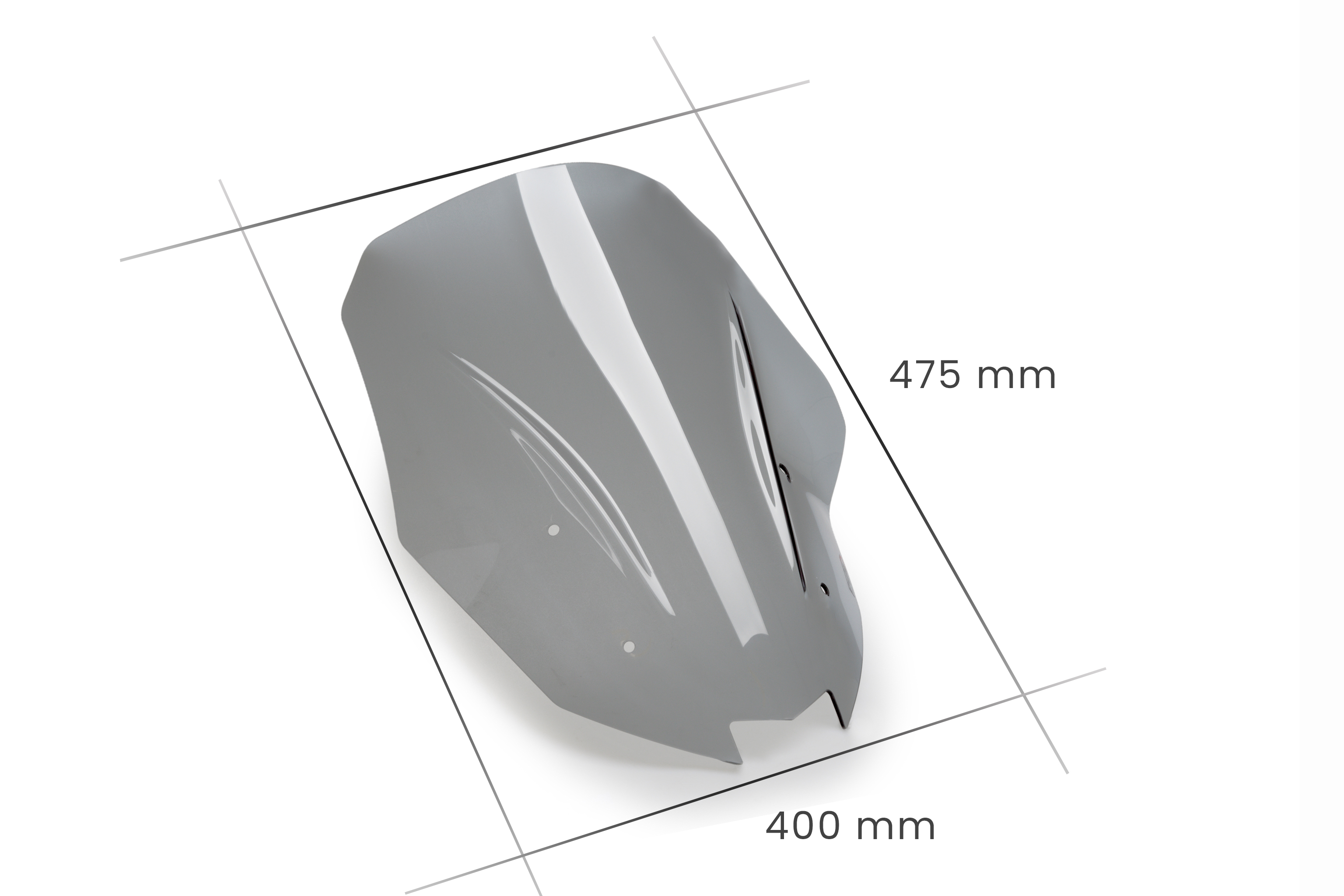 With overall measurements of: 400mm wide by 475mm tall, the Touring screen is 80mm taller than the original Kawasaki screen.