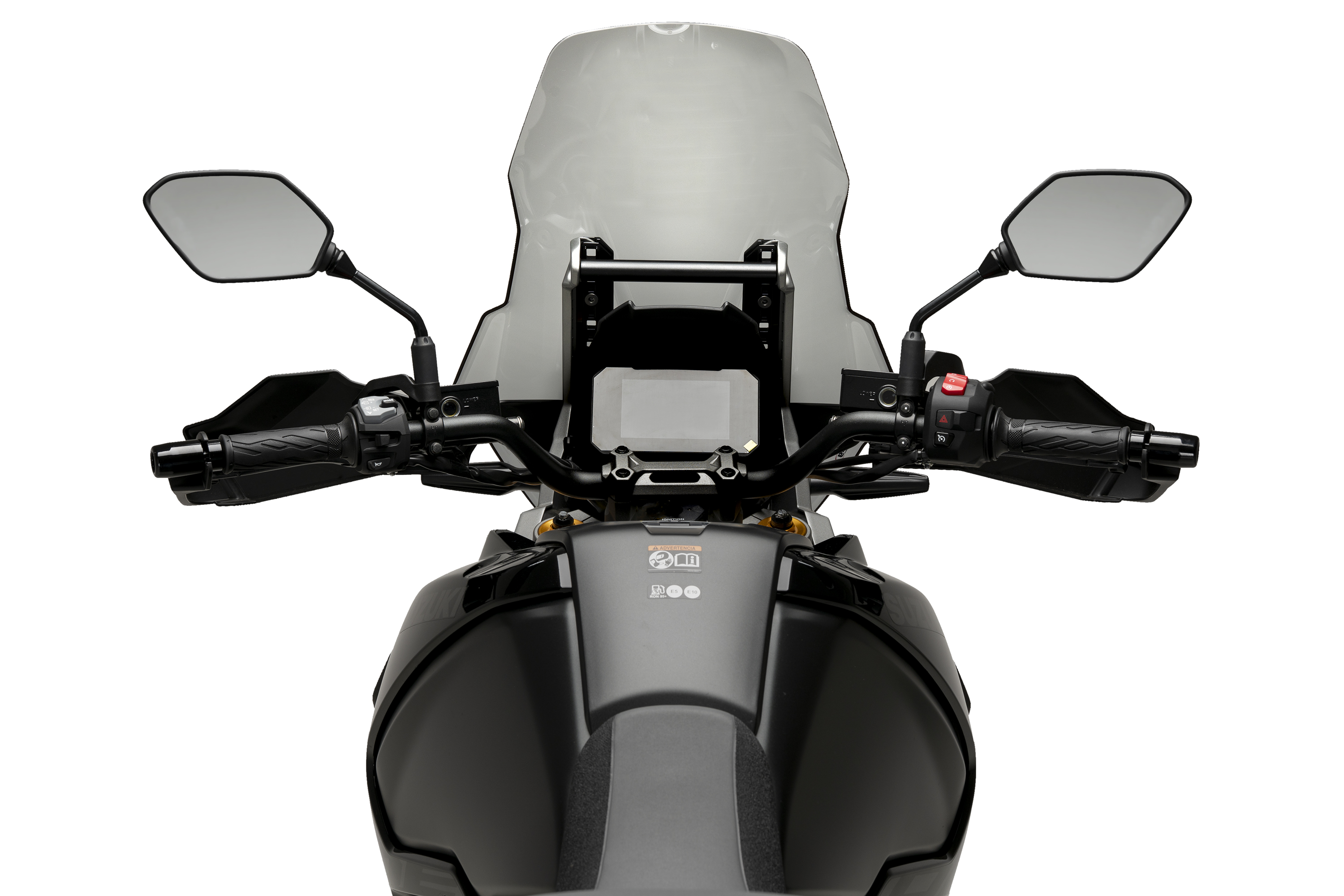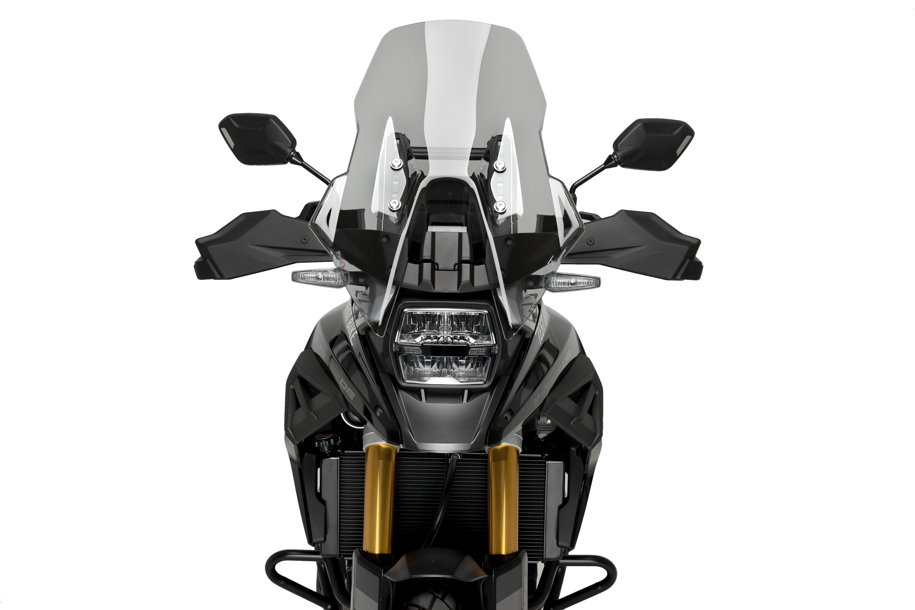 Touring screens, developed by Puig in Barcelona, are designed with the objective to aerodynamically protect the rider without affecting his/her field vision. In addition, these screens fit perfectly with the adventure style and aesthetics of the trail models thanks to their wide range of colors and different sizes.
