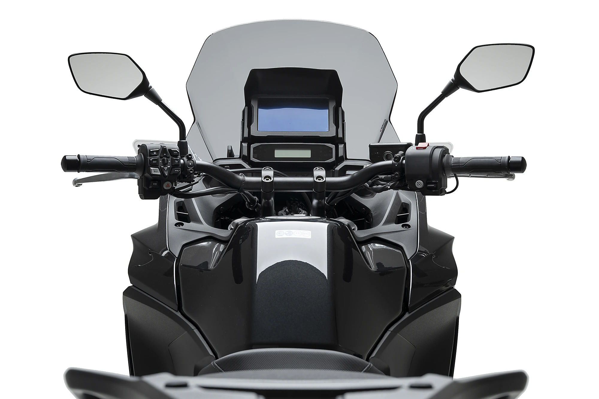 The central upper area is flat to ensure optimal visibility through the screen. The lower side sections are shaped to efficiently deflect air away from the rider’s hands, improving comfort during rides and reducing fatigue on long journeys.