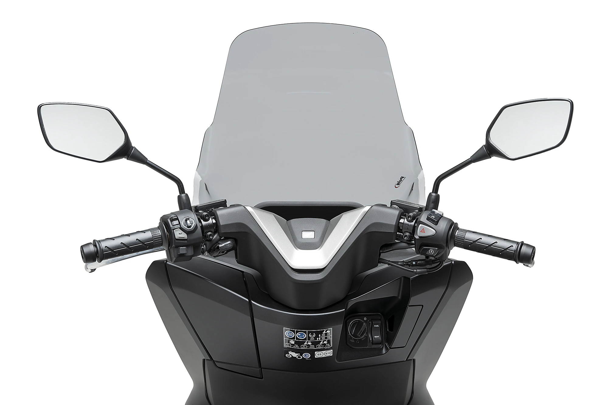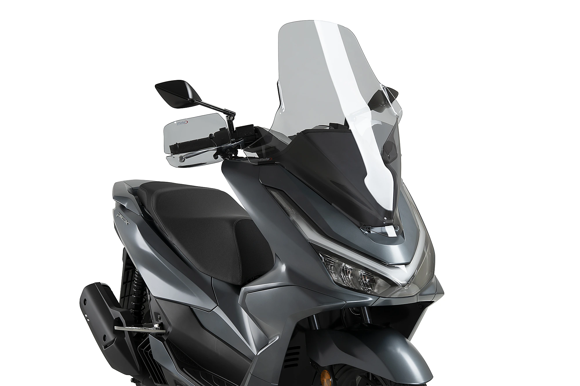 Thanks to an exhaustive aerodynamic study carried out in a virtual wind tunnel, the Puig Touring screen is 255 mm higher than the original Honda PCX 125 2025 screen. This allows the rider to withstand significantly less air pressure, resulting in a notable increase in comfort and a reduction in fatigue while riding.