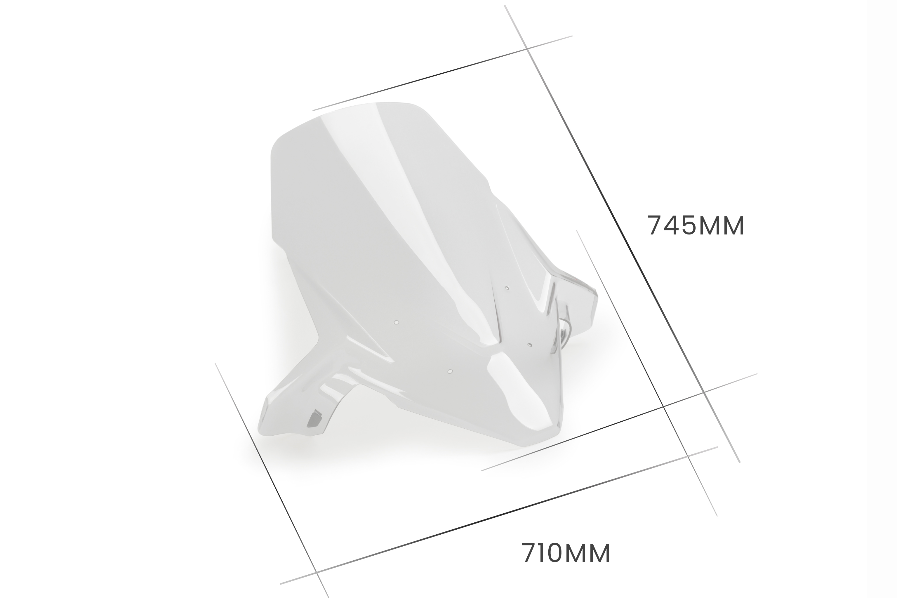 Its larger dimensions substantially improve the protection of the hands and forearms, thanks to the deflectors that protect and deflect the air towards the sides, while its greater height protects the front part of the rider up to the helmet.