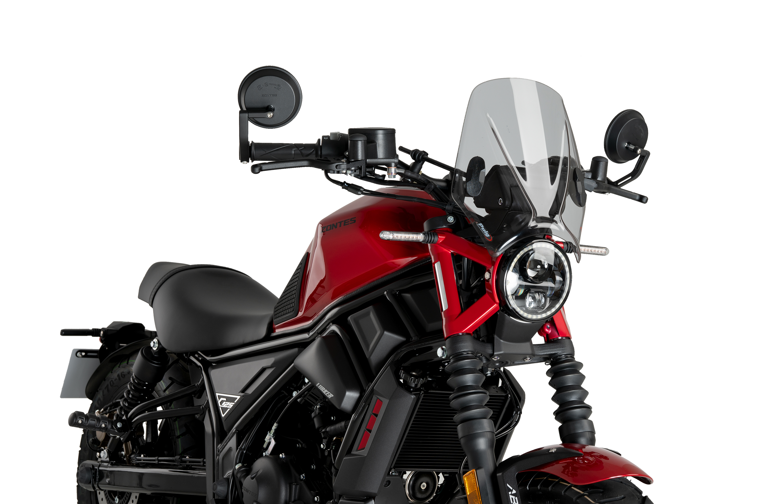 Improve the riding of your motorcycle and give it greater safety with the new Mito windshield from Puig. Thanks to its sober lines, its modernized classic character will give your vehicle more personality, being adaptable to motorcycles with round headlights.