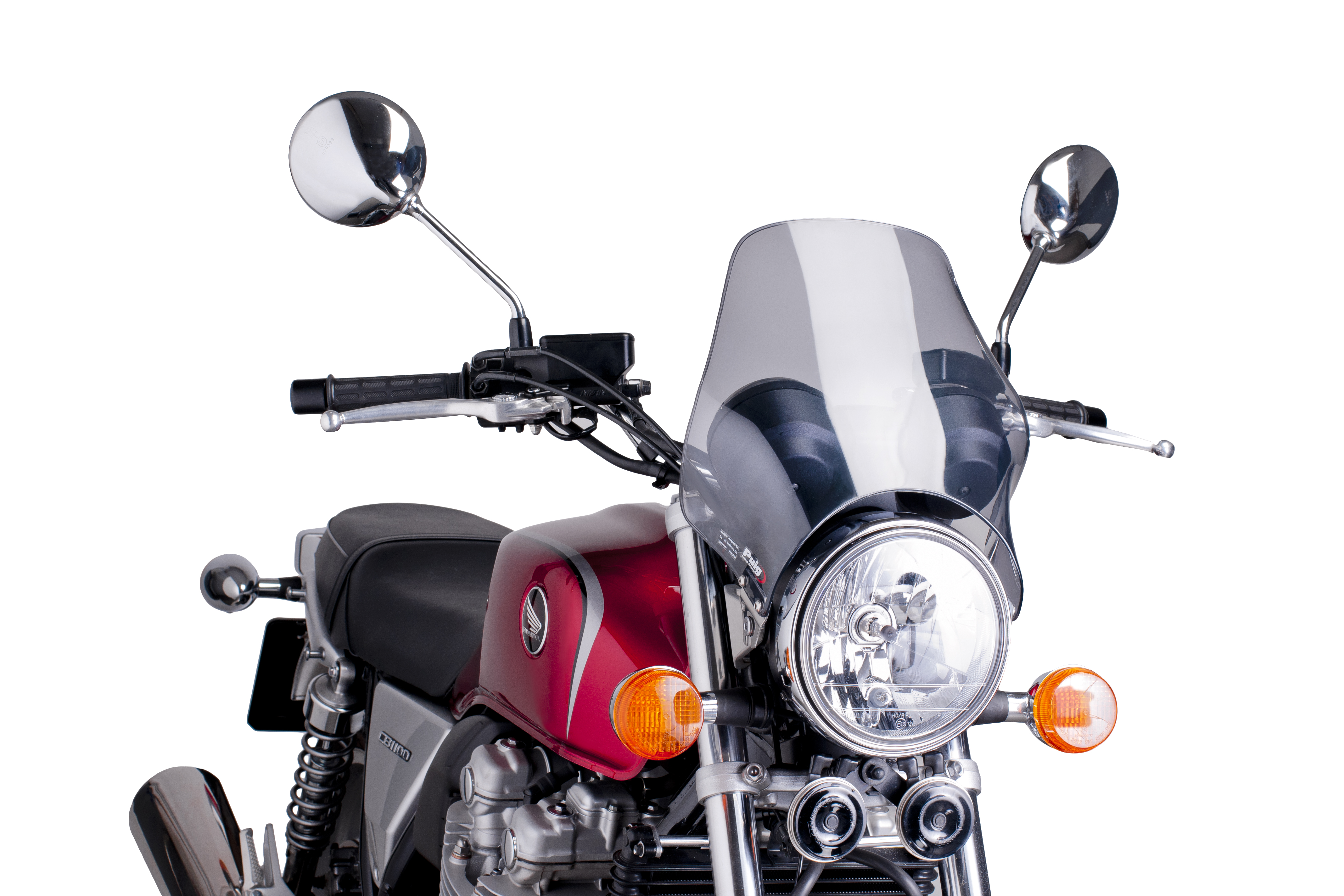If your motorcycle is Naked style and you are looking for a short beacon for a round headlight, the Naked fairing from the Puig Street Screens line will be your best ally.