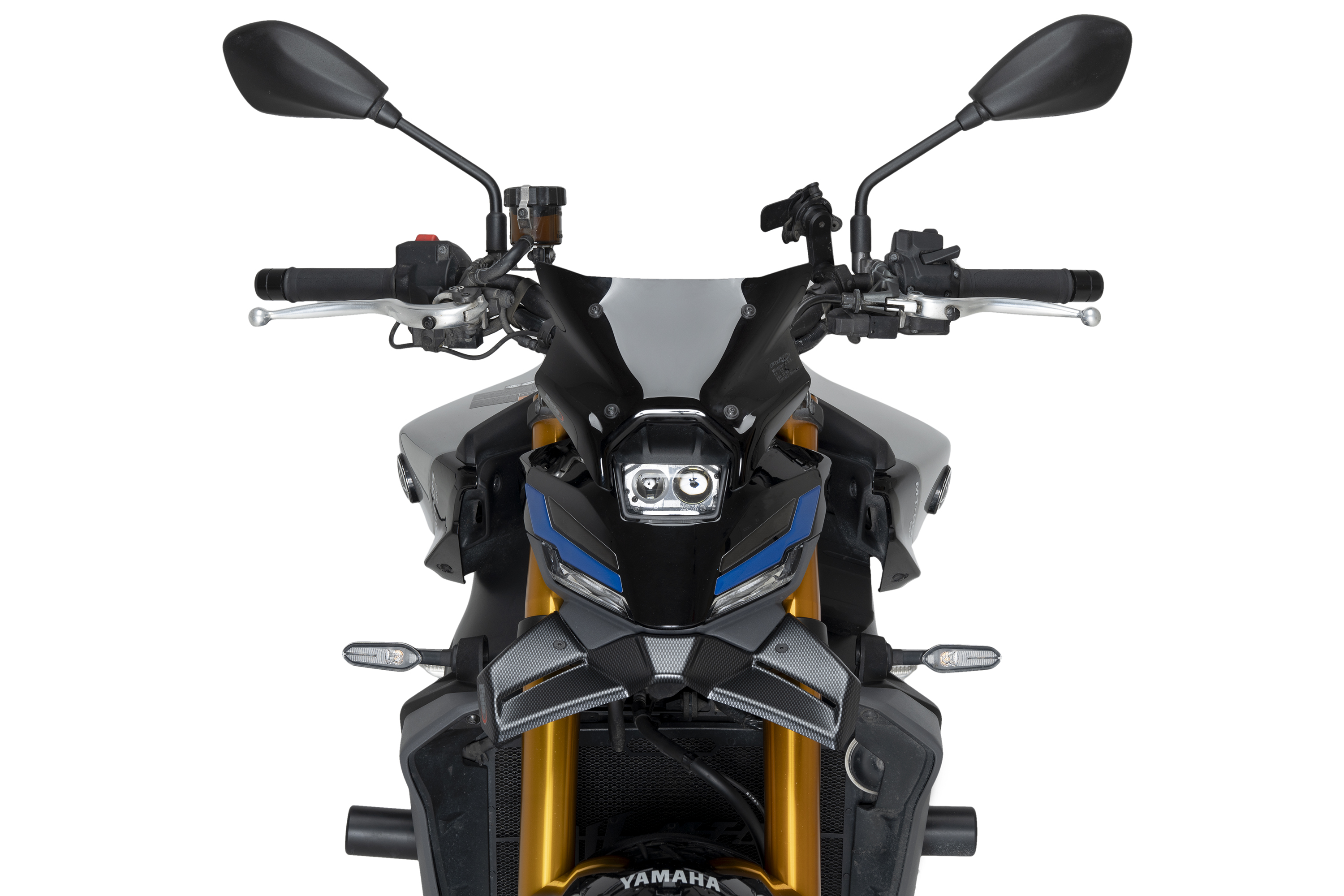 Specifically designed for the Yamaha MT-09, the sleek and aggressive minimalistic shapes of the New Generation Sport Plus screen with its sharp edges fit perfectly with the distinctive front of the Japanese motorcycle. The screen integrates harmoniously with the front, providing design continuity that allows perfect access to the key. It covers the front of the clocks, creating more aerodynamic volumes and improving the aerodynamic drag coefficient (Cx).