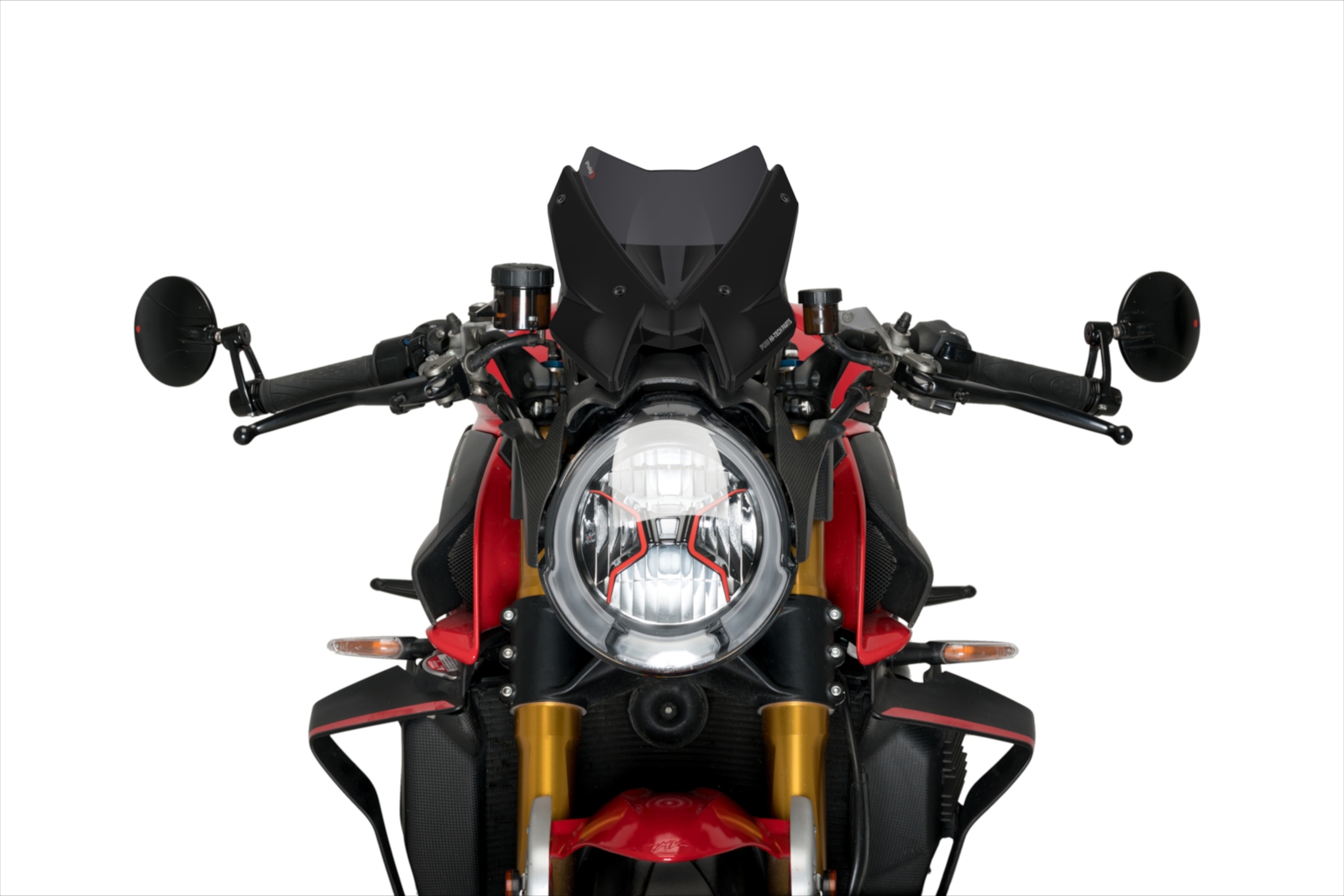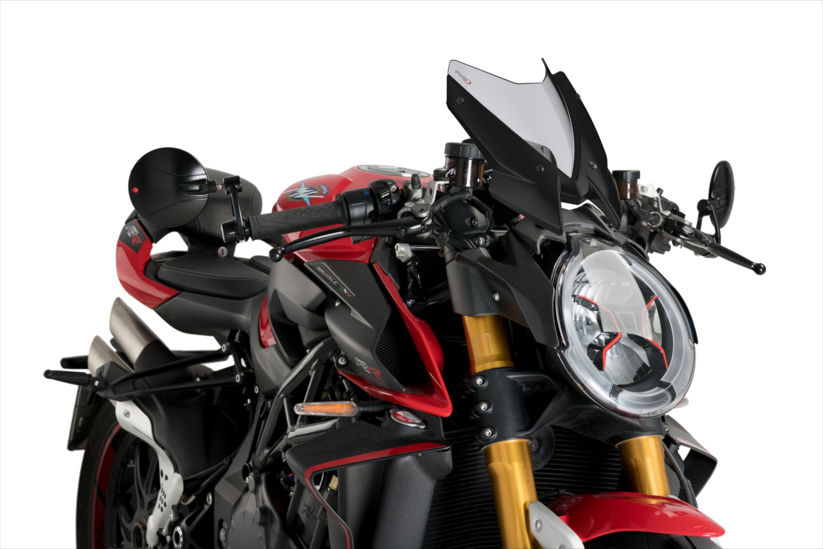 The new NG Sport screen by Puig for the MV AGUSTA BRUTALE 1000RR has been created in order to improve the riding experience, providing greater aerodynamic capacity to the motorcycle, but respecting and enhancing the aggressiveness of this sport model.