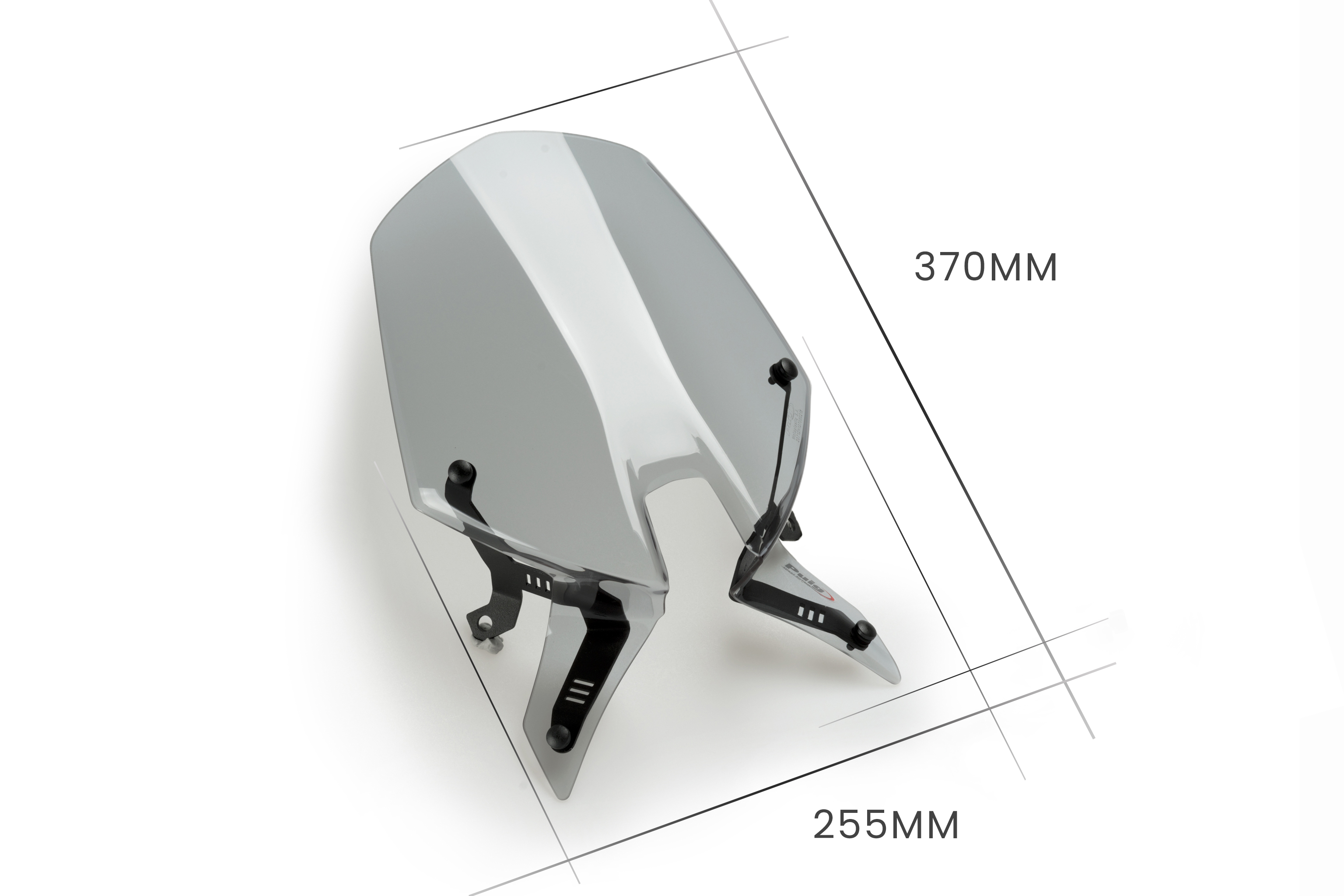 Designed and manufactured entirely in Barcelona under the most advanced technology, the NG Sport windshield is made of 3mm thick PMMA (acrylic material highly resistant to impacts or splashes) with UV treatment.
