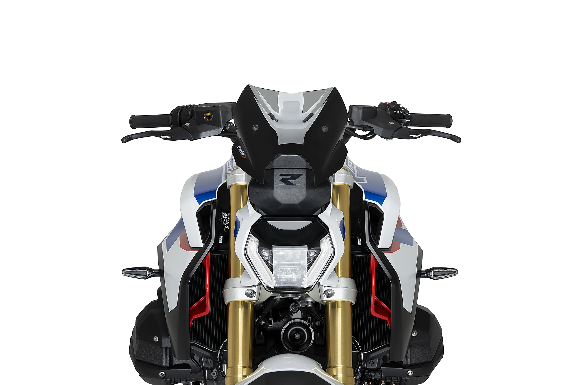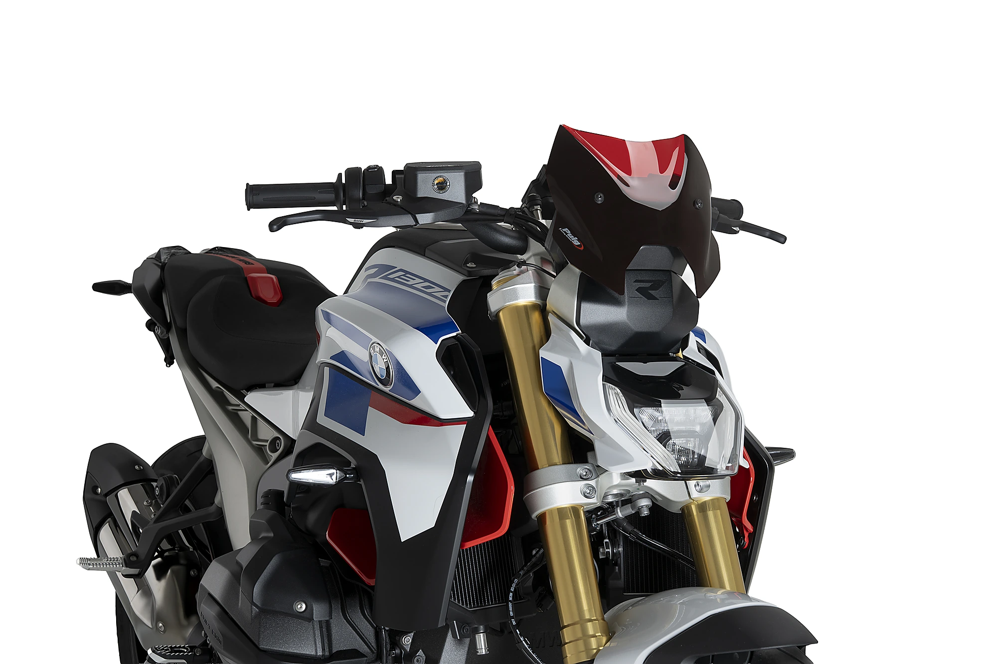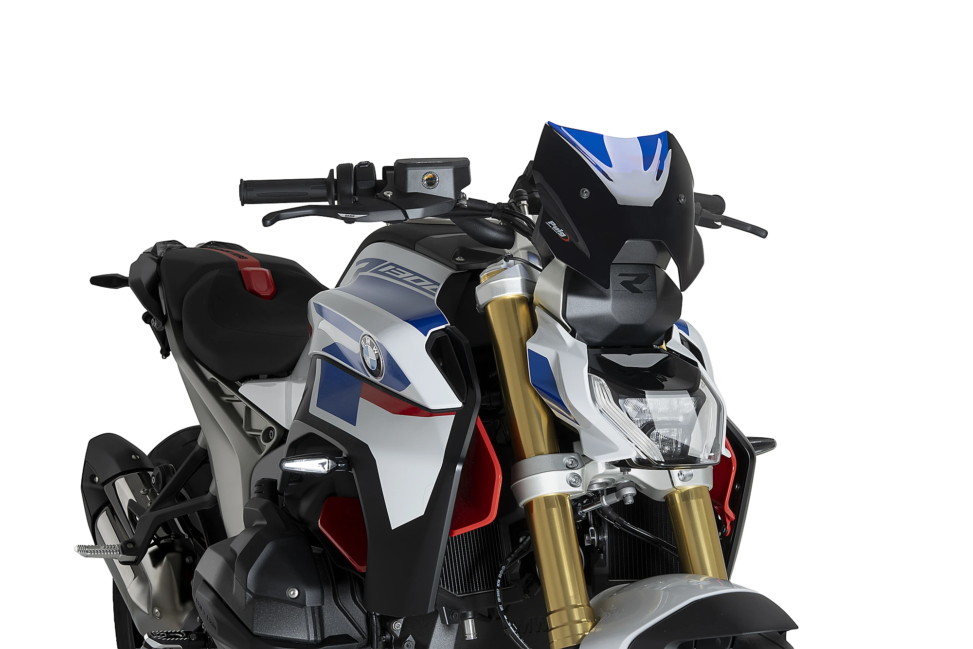 The Puig Sport screen for the BMW R1300R has been designed to accompany and reinforce the aggressive and sporty character of the front end of this iconic naked model. Its marked diagonal lines, which visually point towards the radar and headlight area, provide dynamism and a strong aesthetic in line with the sporty DNA of the R1300R.