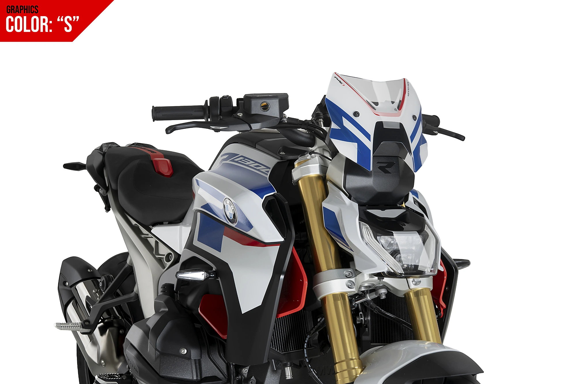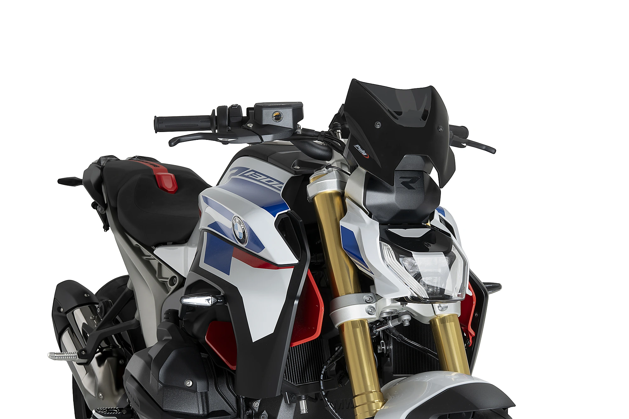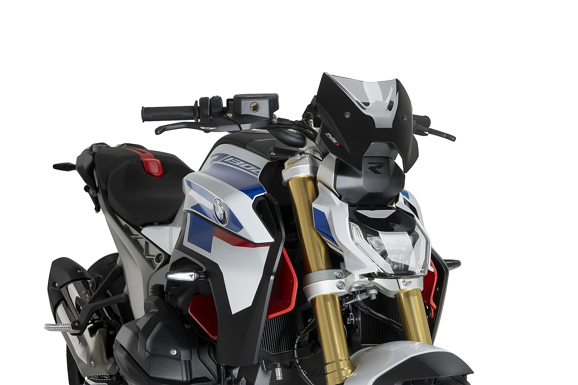 The Puig Sport screen for the BMW R1300R has been designed to accompany and reinforce the aggressive and sporty character of the front end of this iconic naked model. Its marked diagonal lines, which visually point towards the radar and headlight area, provide dynamism and a strong aesthetic in line with the sporty DNA of the R1300R.